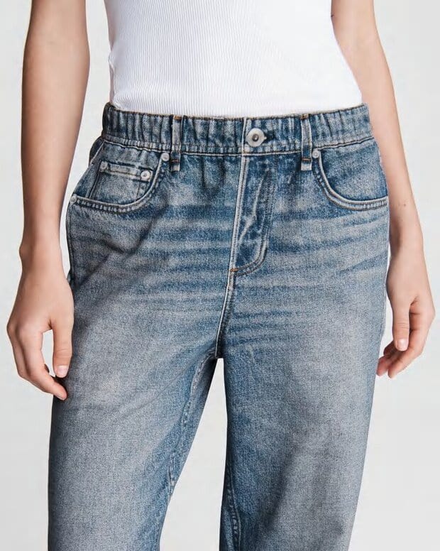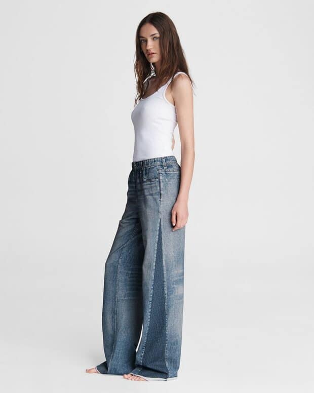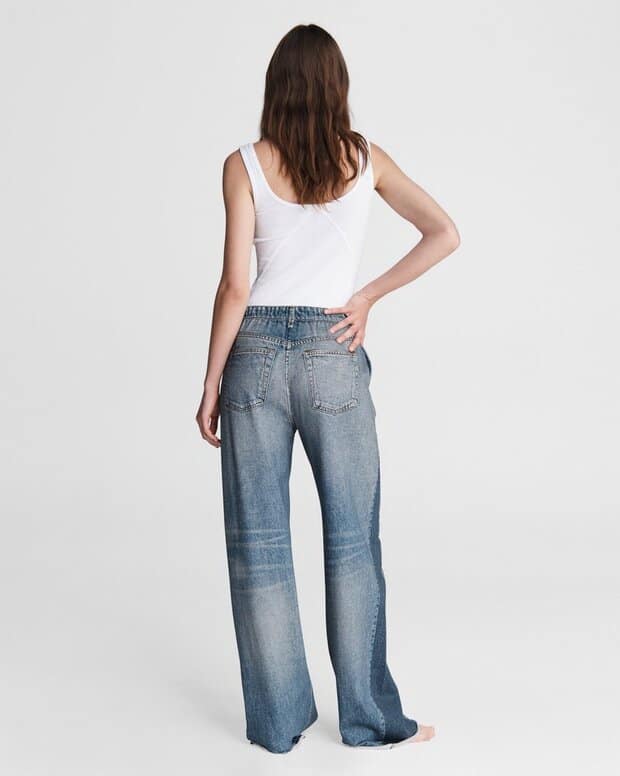 The Rag & Bone Miramar Wide Leg Middleton... Are those jeans? Is it the perfect pair of wide-leg sweatpants? With this very comfortable, loop-back cotton terry pant patterned to resemble your favourite wide-leg, high-rise jeans, you'll deceive everyone. Featuring elastic at the waist and side seam pockets that look just like denim. A perfect comfy addition to your autumn wardrobe.