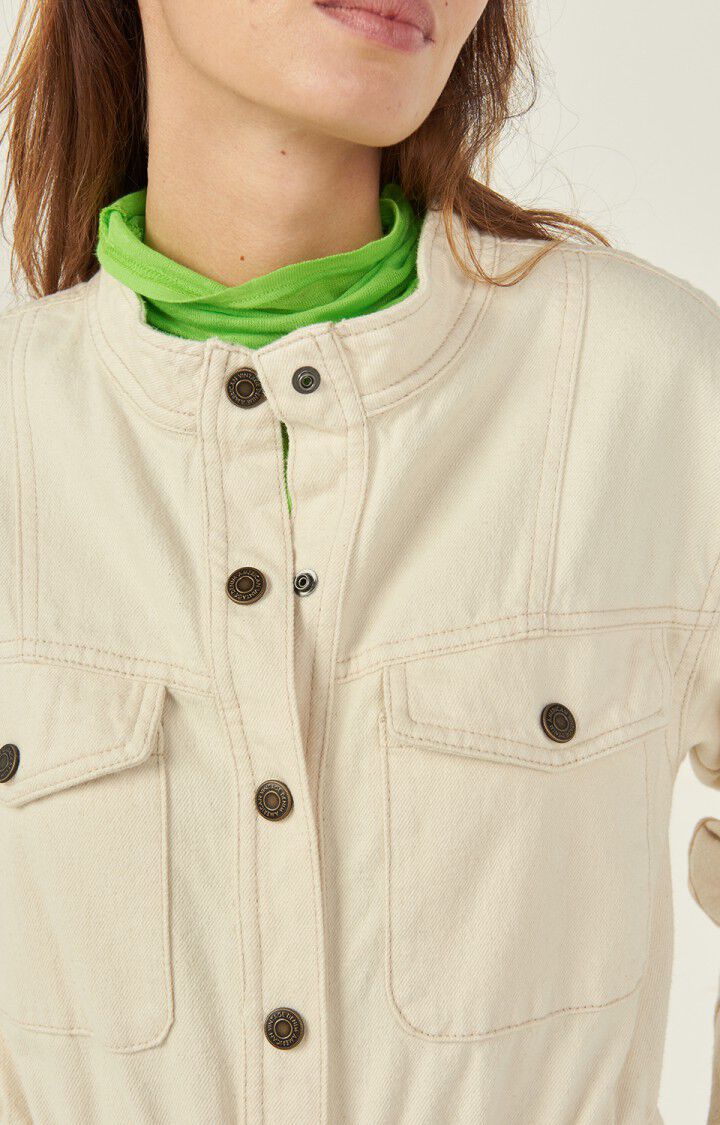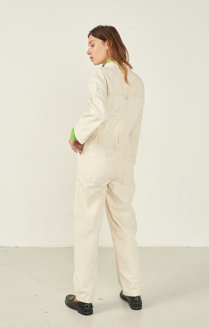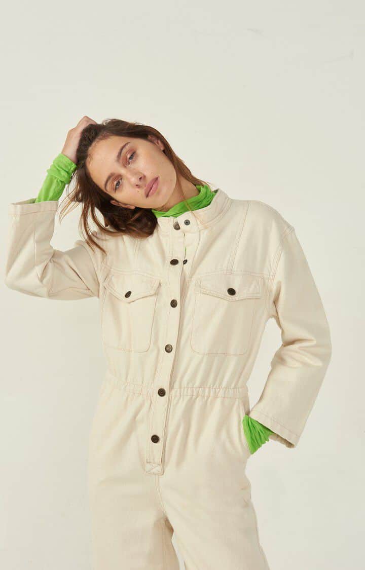 The American Vintage Spywood Jumpsuit in Ecru is the ultimate comfort to stylish one piece. This long sleeve jumpsuit with buttton-down collar is a must have this autumn winter.