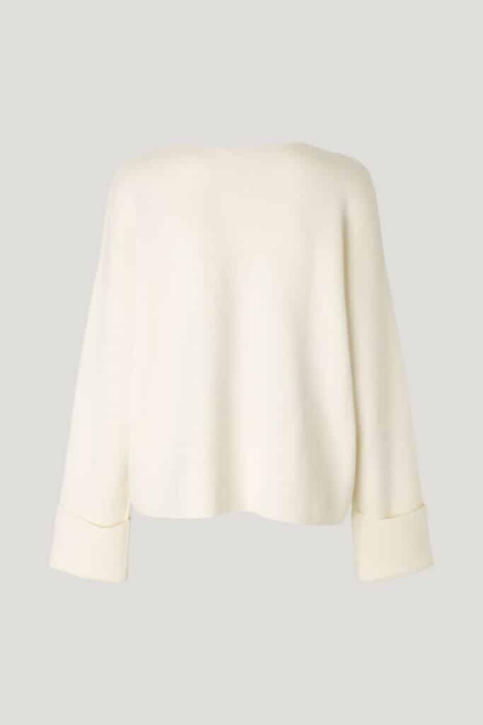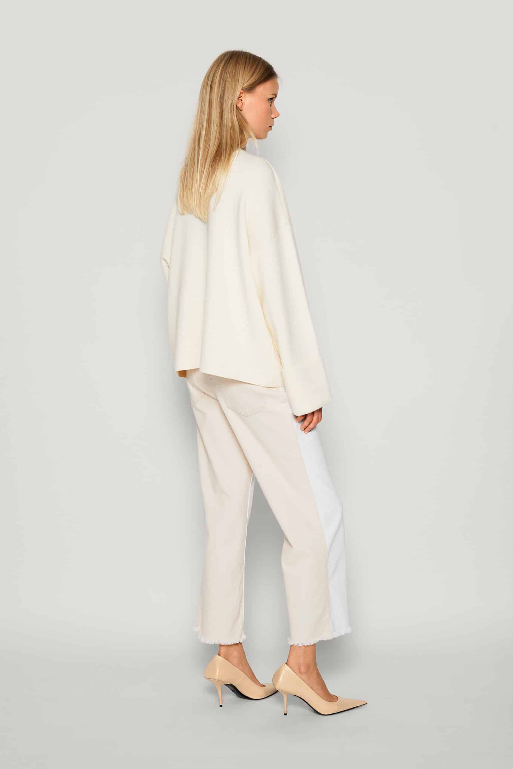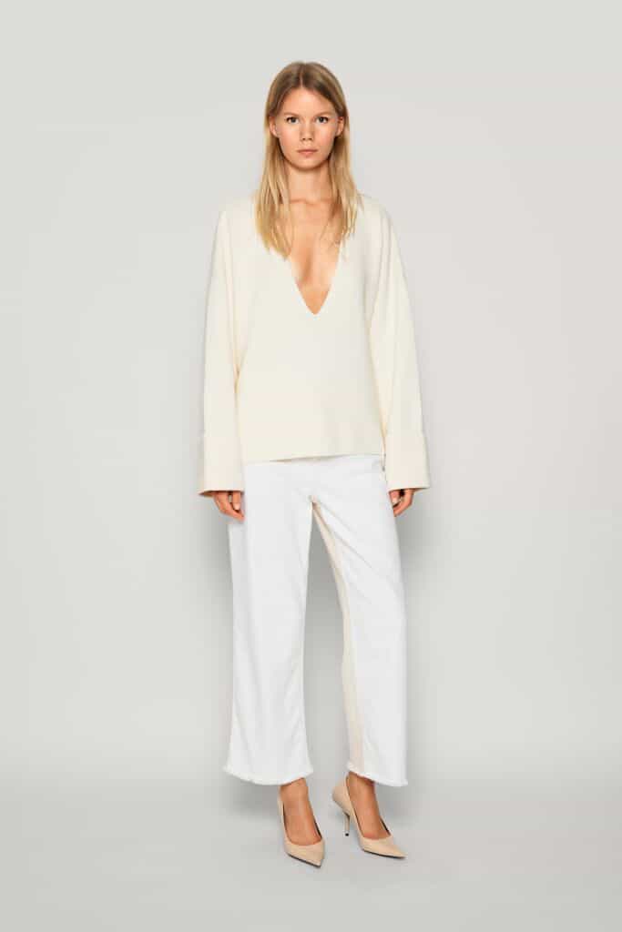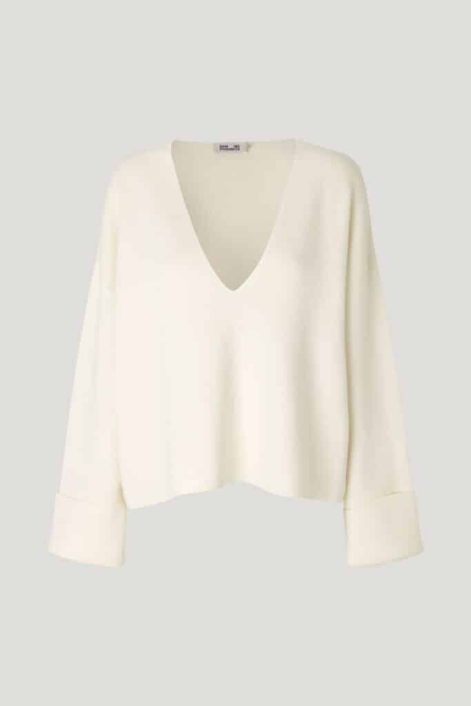 The Baum Und Pferdgarten Coalbee top in creamy eggnog is a stunning, thick knit jumper that has a deep V-neck and dipped hem. The arms are extra long and can be folded back at the wrist for a cuffed look. This top is perfect for creating a stylish, yet easy look for day or night especially when it is teamed with the gorgeous Baum Und Pferdgarten Needra jeans.