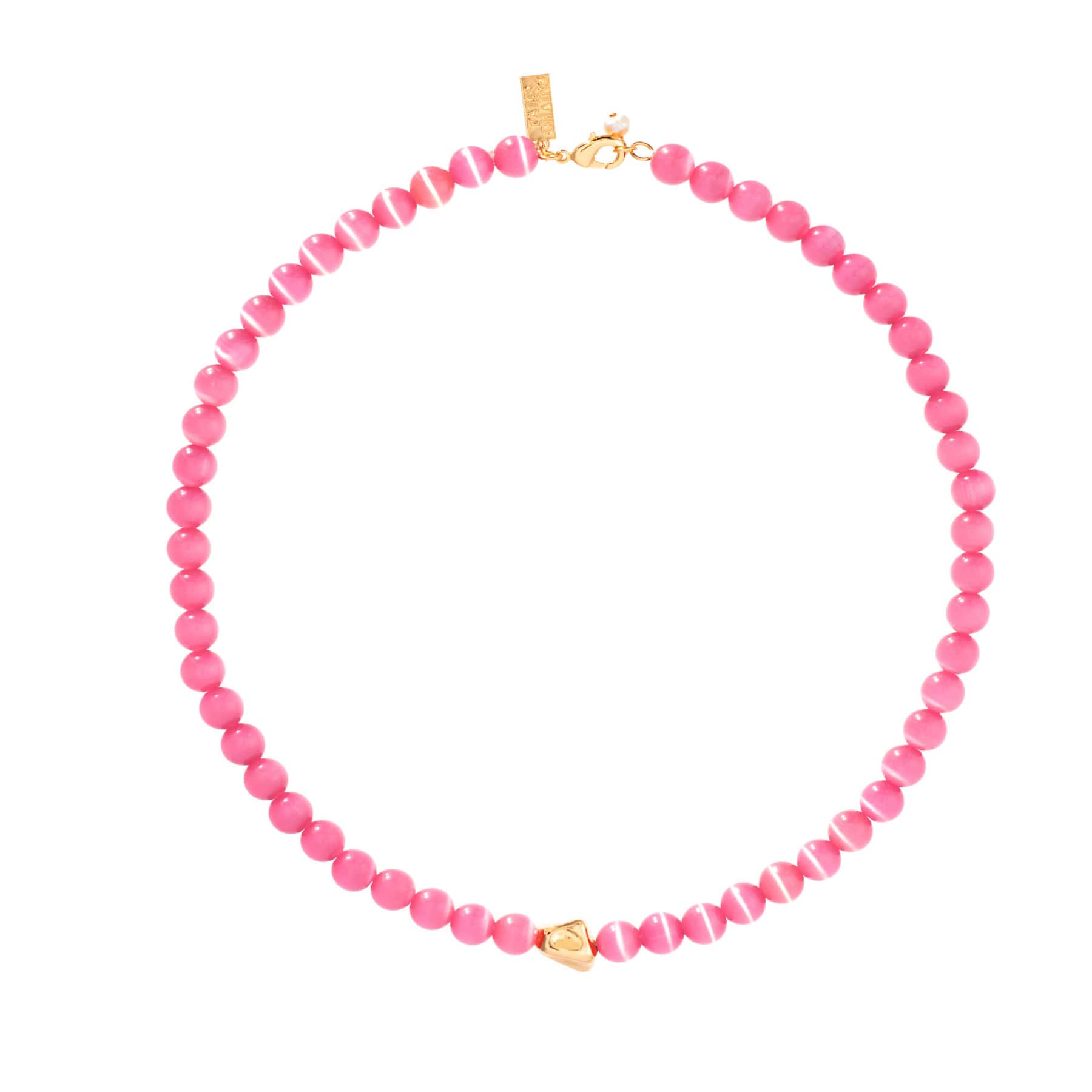 The Talis Chains Tokyo necklace in pink is a striking 40cm necklace that is made from cat eye glass beads and fresh water pearls in a gorgeous pink hue. This necklace is perfect for adding a bit of fun to your outfit or for injecting a bit of colour into your everyday or holiday style. Wear with the Talis Chains Evil Eye Pendant Necklace Pink for the perfect layered look.