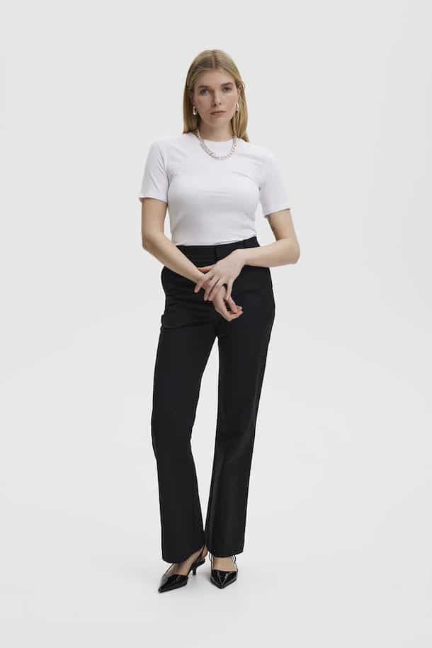 The Gestuz DamyGZ Tee White is A basic T-shirt made in a soft and stretchy modal jersey fabric. It has a crew neck and short sleeves that are cut at the middle of the upper arm. The T-shirt has a slim fit and is cut at the middle of the hips, an everyday wardrobe essential.