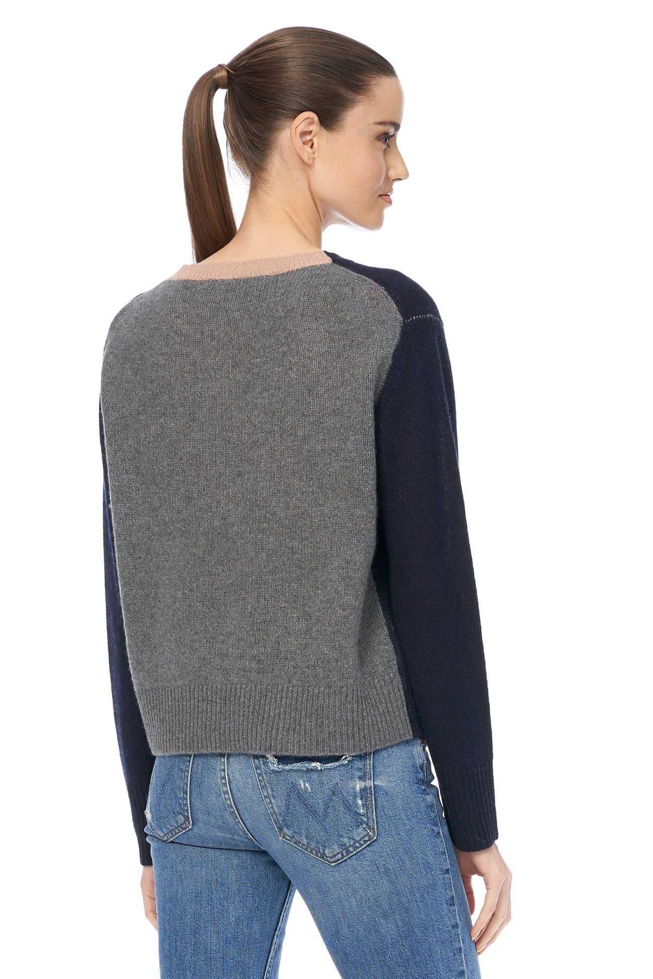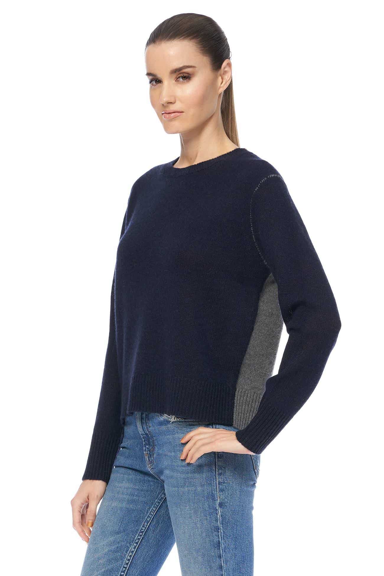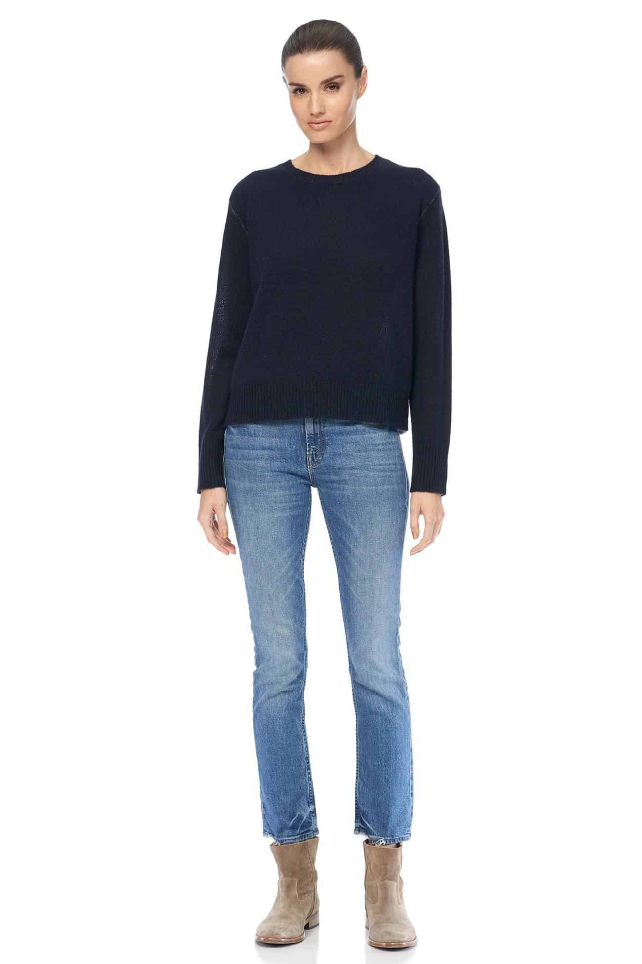 The 360Cashmere Karla Jumper in Navy is a timeless crew neck sweater in pure cashmere. Featuring drop shoulders, cropped body and ribbed edge detail. Complete with chic accent colour back and contrasting back neck detail.