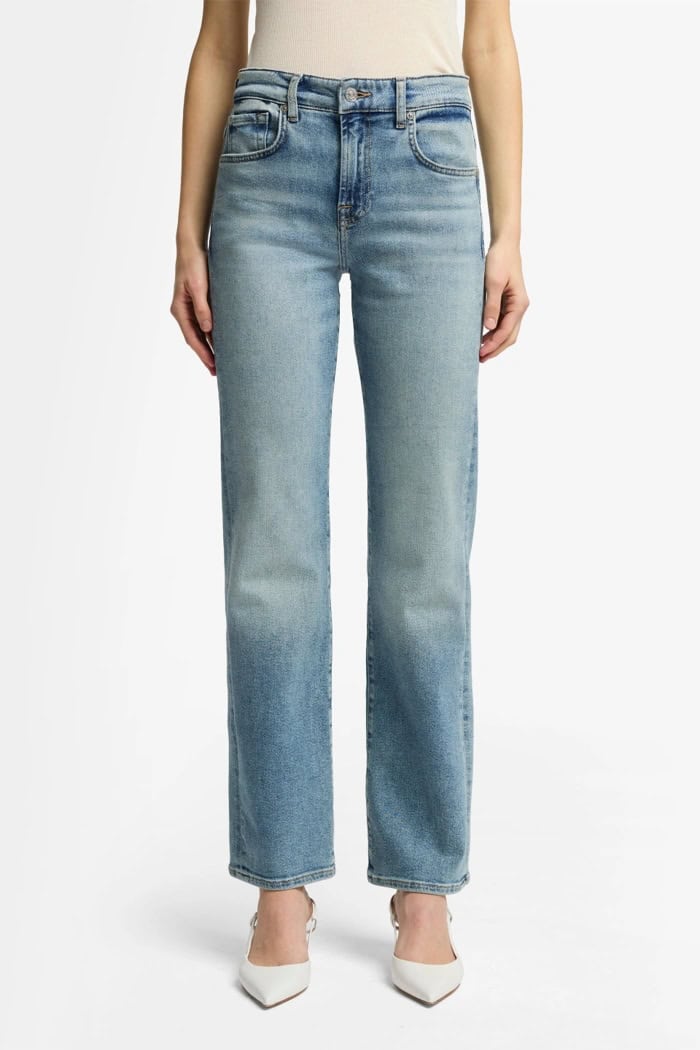 The 7 For All Mankind Calie straight in amuse me are the perfect pair of mid rise, straight leg jeans to take you from season to season. Crafted from the brand's premium, luxe vintage denim, for an authentic look with just the right amount of stretch, they feature fading and whiskering and a zip fly. For effortless style team with a classic t-shirt, blazer and kitten heels.