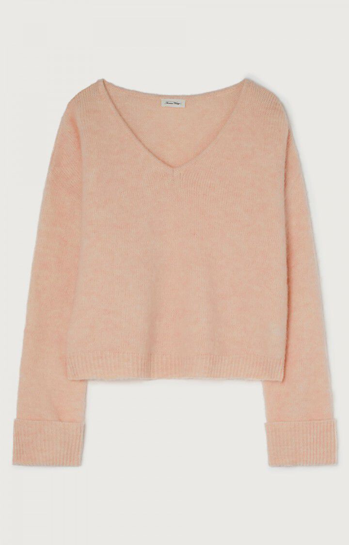 The American Vintage East jumper in ballerina melange is an alpaca mix jumper with a v neck and ribbed cuffs that are turned up. The relaxed fit jumper is a slightly bubble shape making it a great choice for wearing with jeans or over dresses. A simple yet stylish jumper that will also keep you cosy.