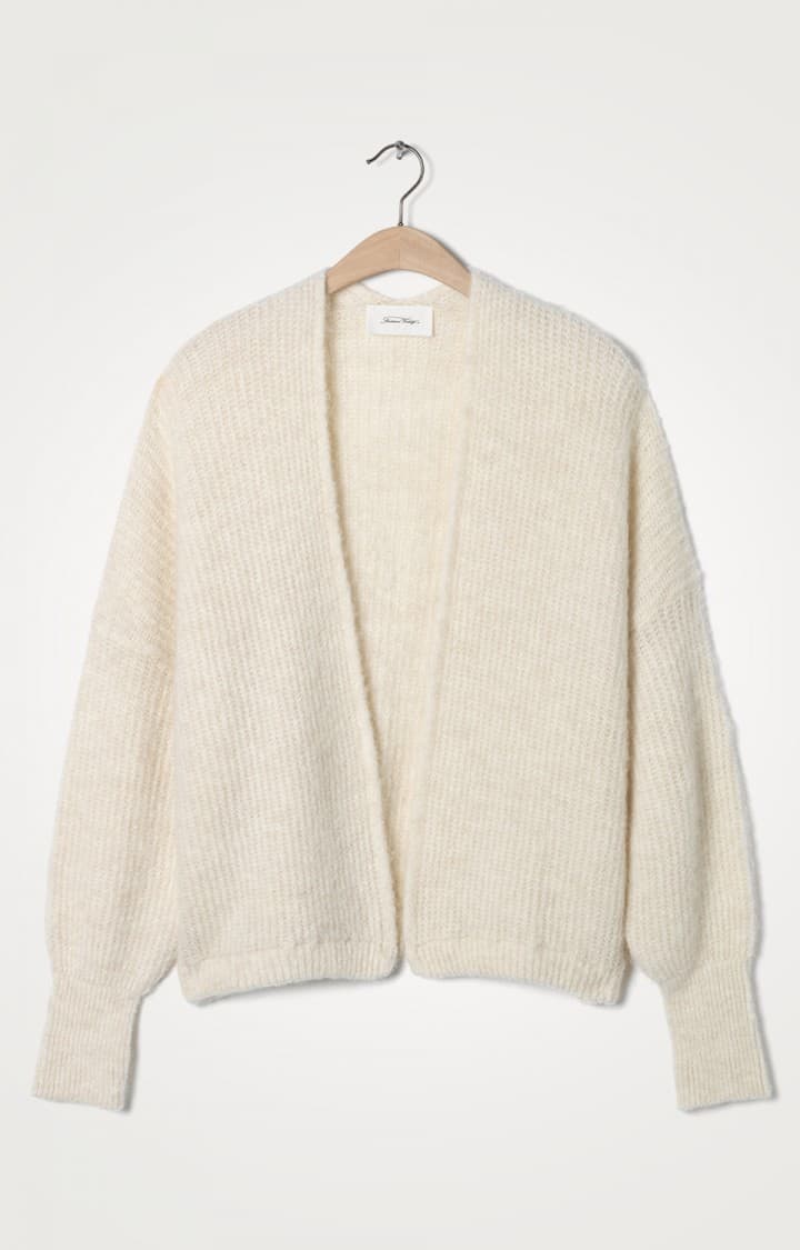 The East short cardigan in Nacre Chine is a new style from American Vintage. Made from an alpaca wool mix the cardigan is super cosy and perfect for layering over dresses or with a pair of jeans and American Vintage tee.