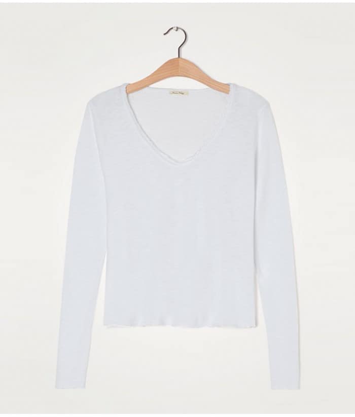 The American Vintage V Neck long sleeve Sonoma top in white is a timeless top in 100% cotton that is easy to wear in a variety of ways and is perfect for layering or adding to your loungewear.