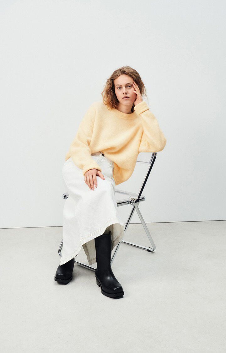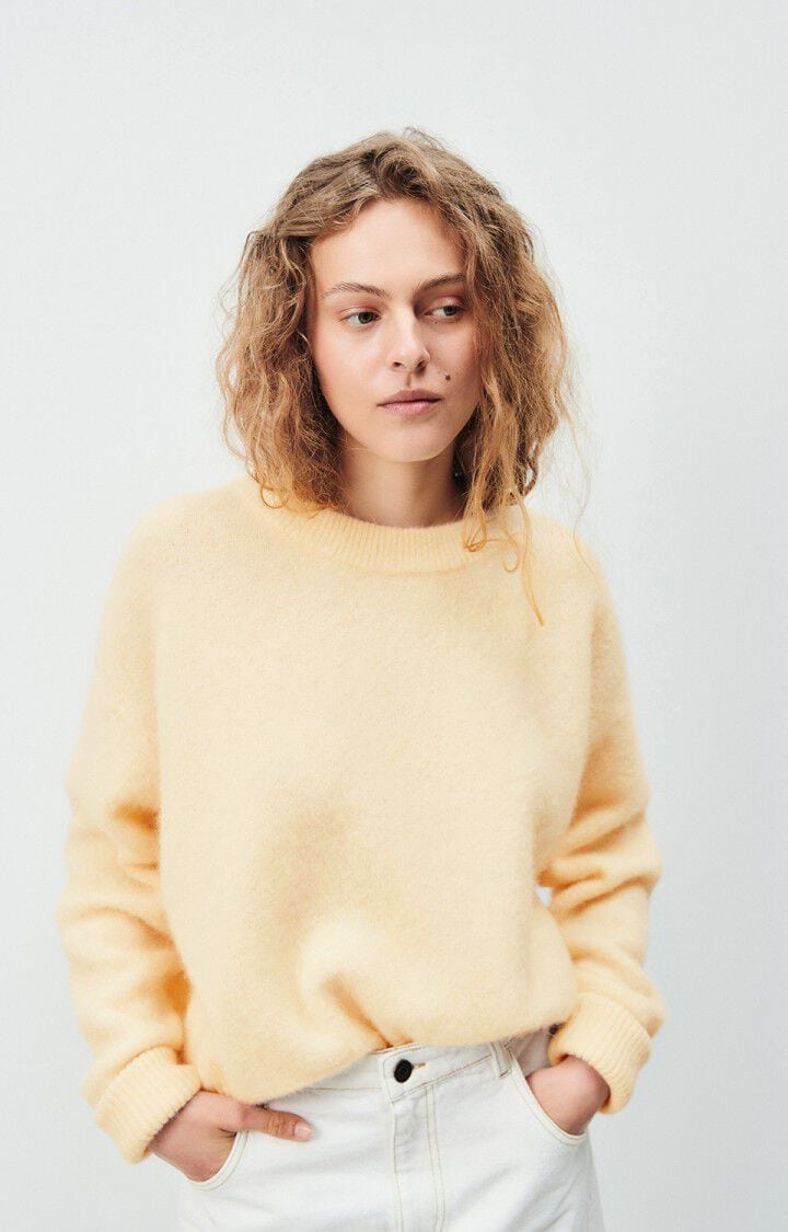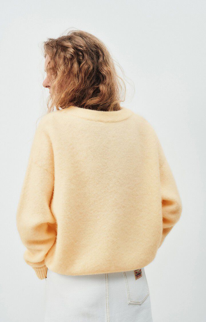 The American Vintage Vitow Jumper cheesecake is the must have jumper to see you through the seasons with its simple yet effective cut and neutral tone. Pair with your favourite Cocaranti denim such as the Reiko Gina Low Rise Straight DNM V-379 7 For All Mankind Jayne Tapered Serenada Light Blue for an easy transitional outfit or throw it on over a dress when it gets a bit cooler.