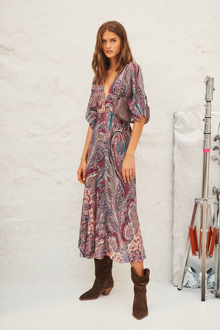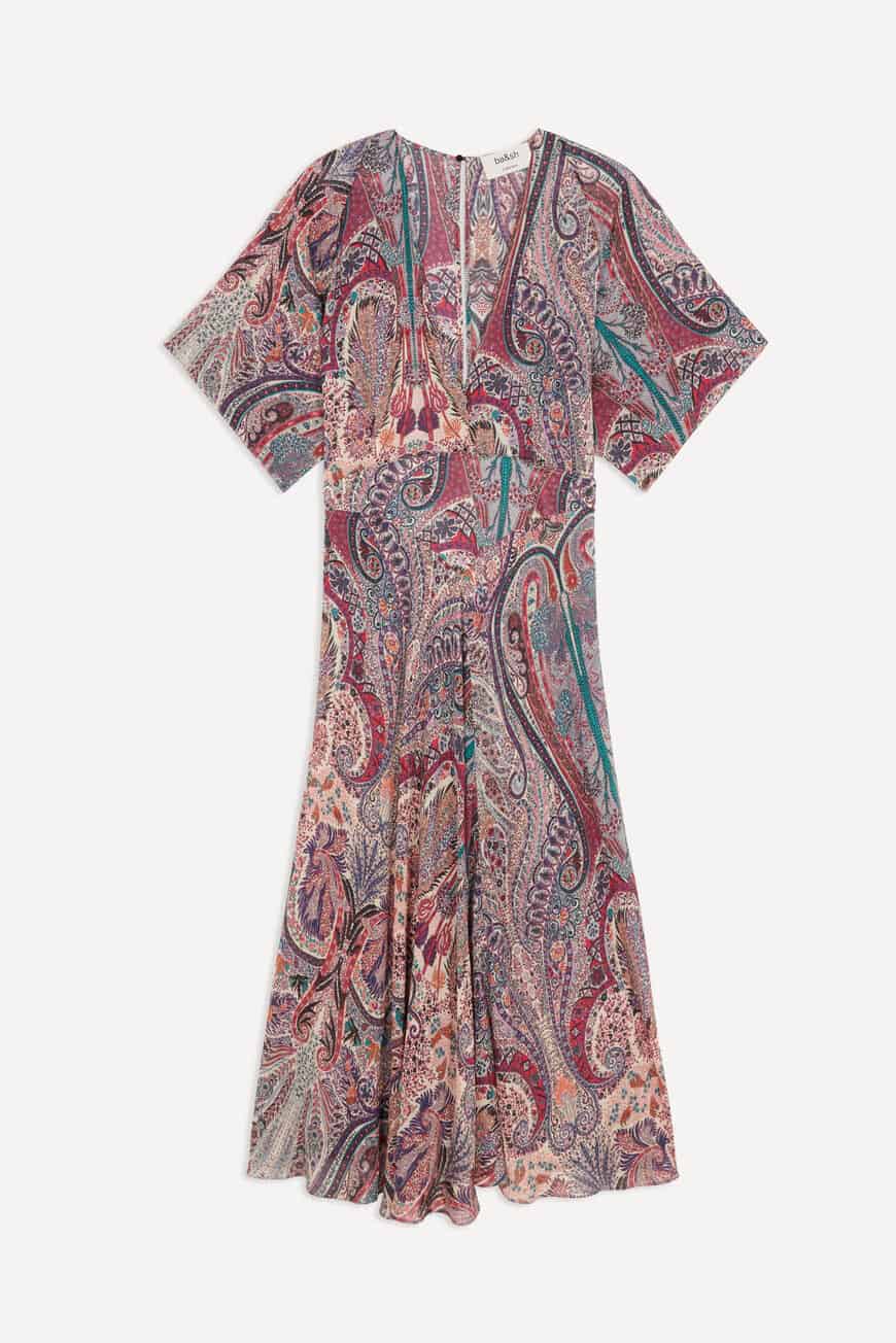 The BA&SH Bee print midi dress in rose is a stunning dress that exudes whimsical summer days. The v-neck, short sleeves and midi length ensure that this dress can be worn throughout the day and into the evening, whilst the open back creates a sexy edge to the stylish dress. Wear it with during the day with a denim jacket, boots or trainers and a bralette or lace cami underneath for a less exposed look. In the evening, just add heels and wear without a cami underneath so show the exquisite design of the back of the dress.