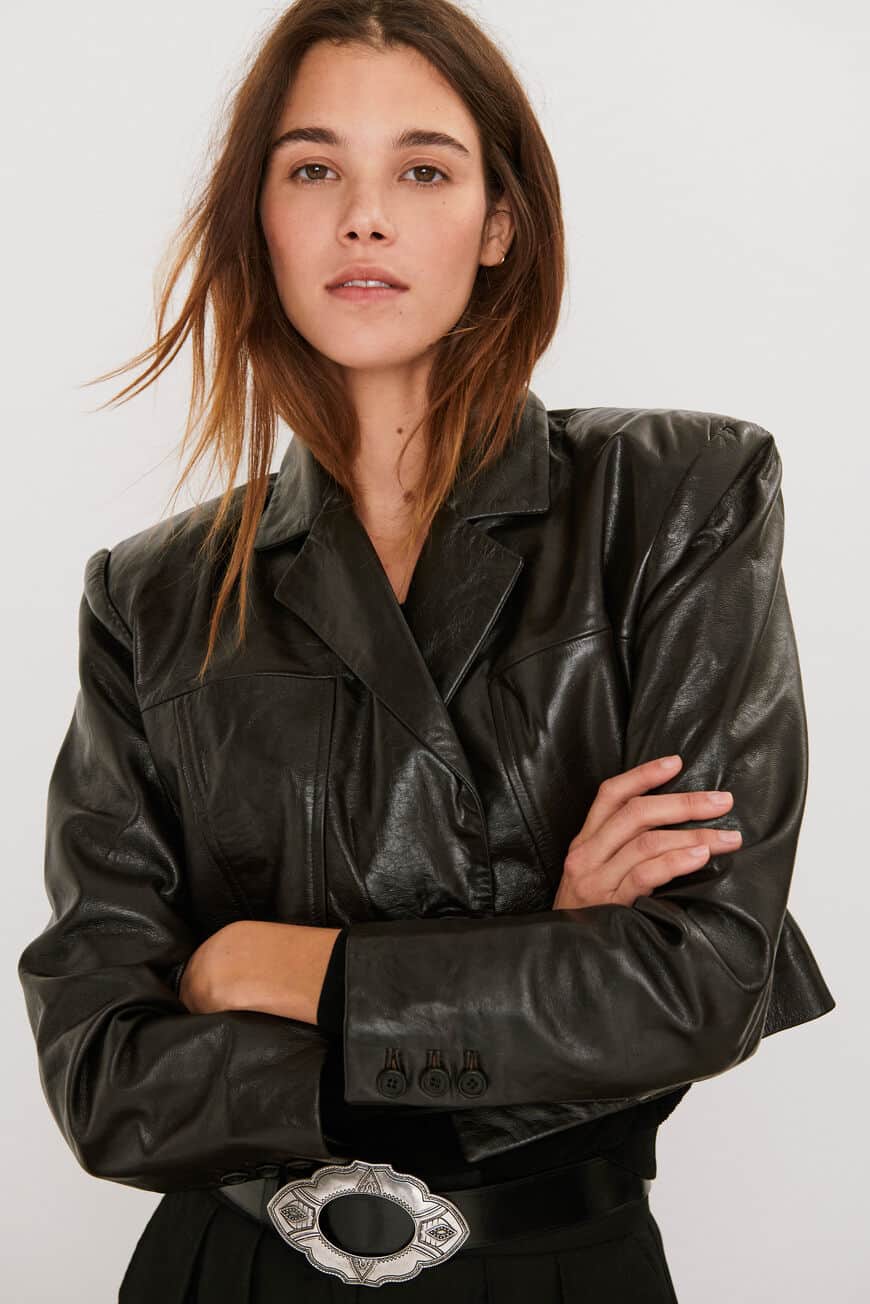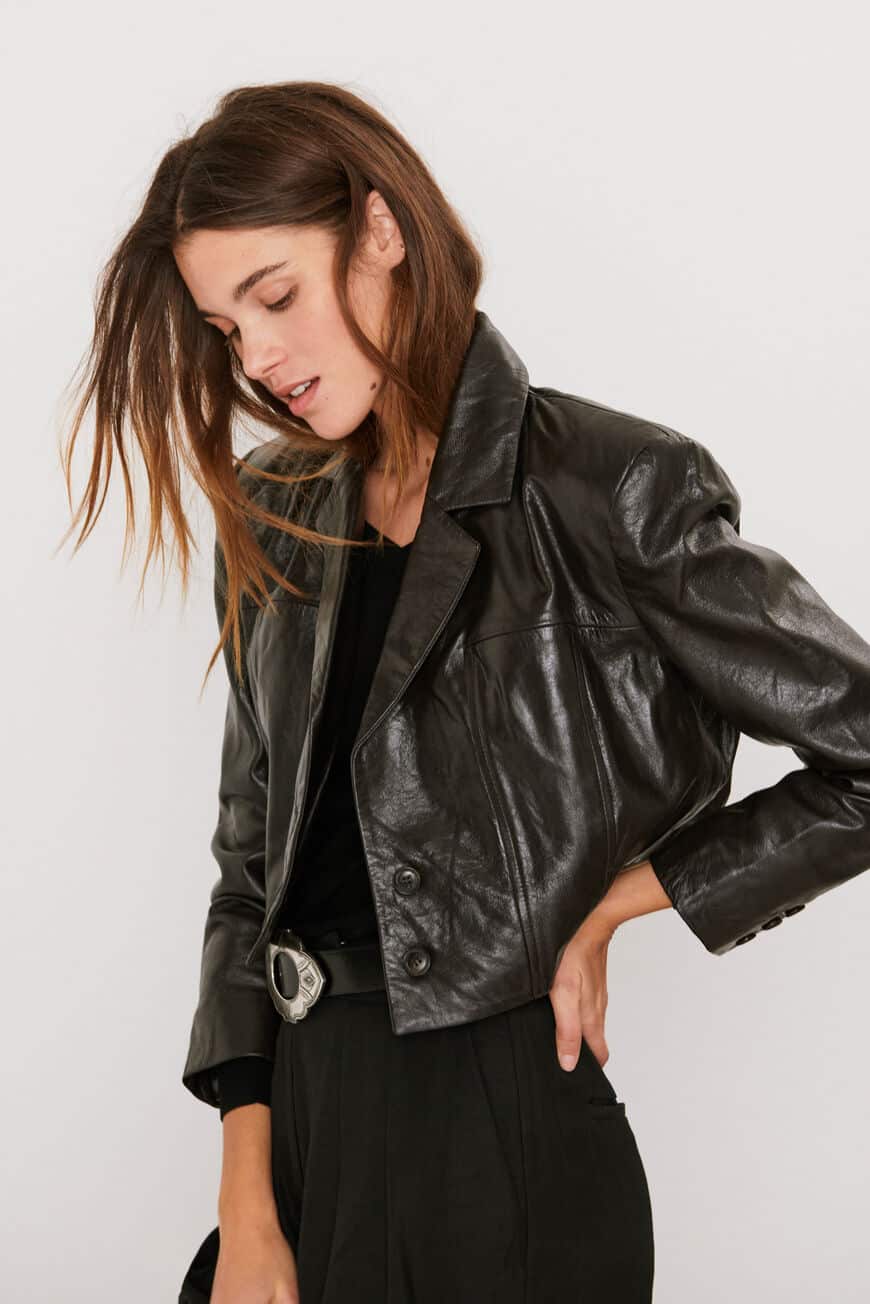 The BA&SH Celia leather jacket in brown is a stunning jacket reminiscent of the late 80s and early 90s made from a super soft lambskin. This short leather jacket is perfect for adding structure to your outfit and looks great when teamed with high waisted jeans and a t-shirt or over dresses.