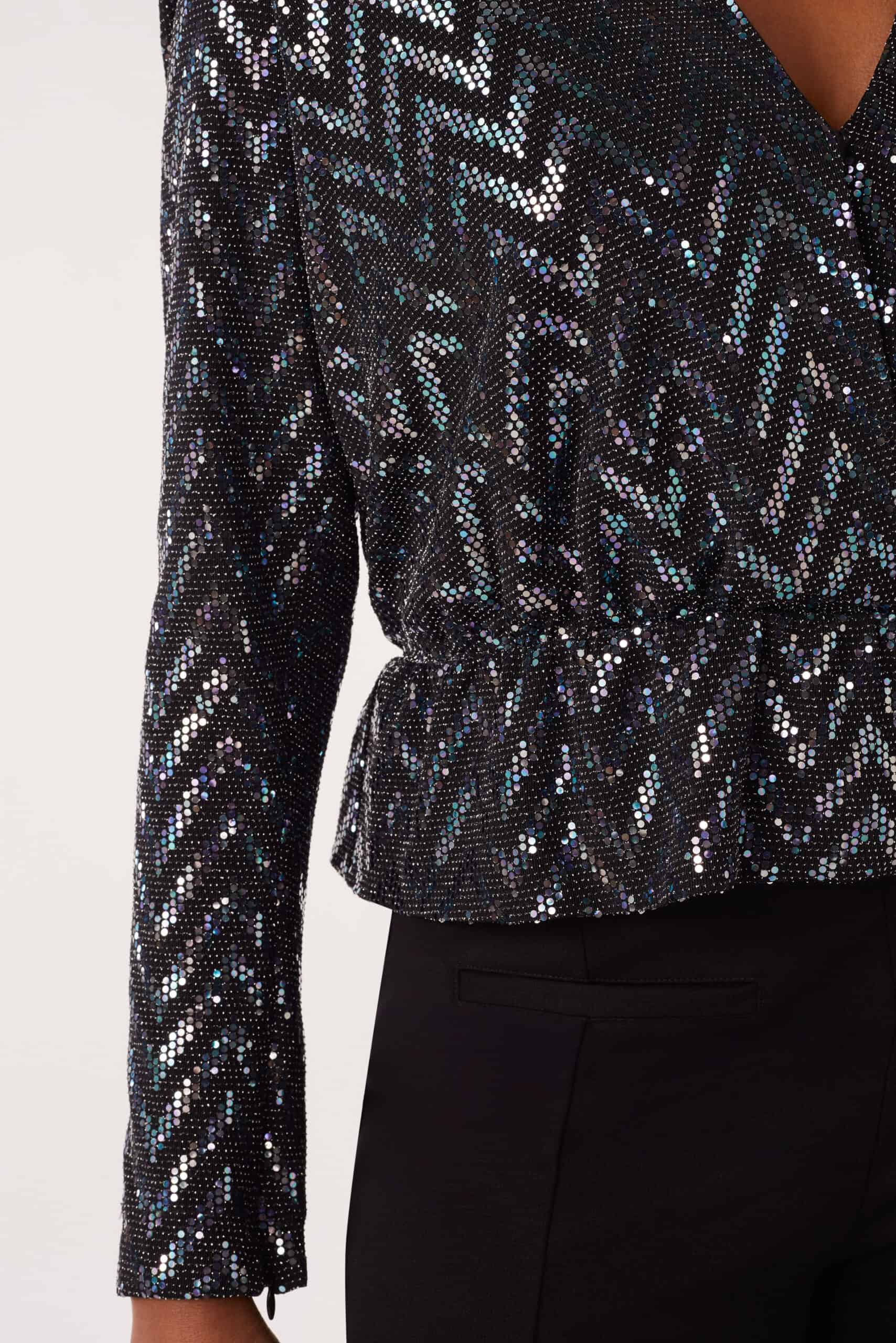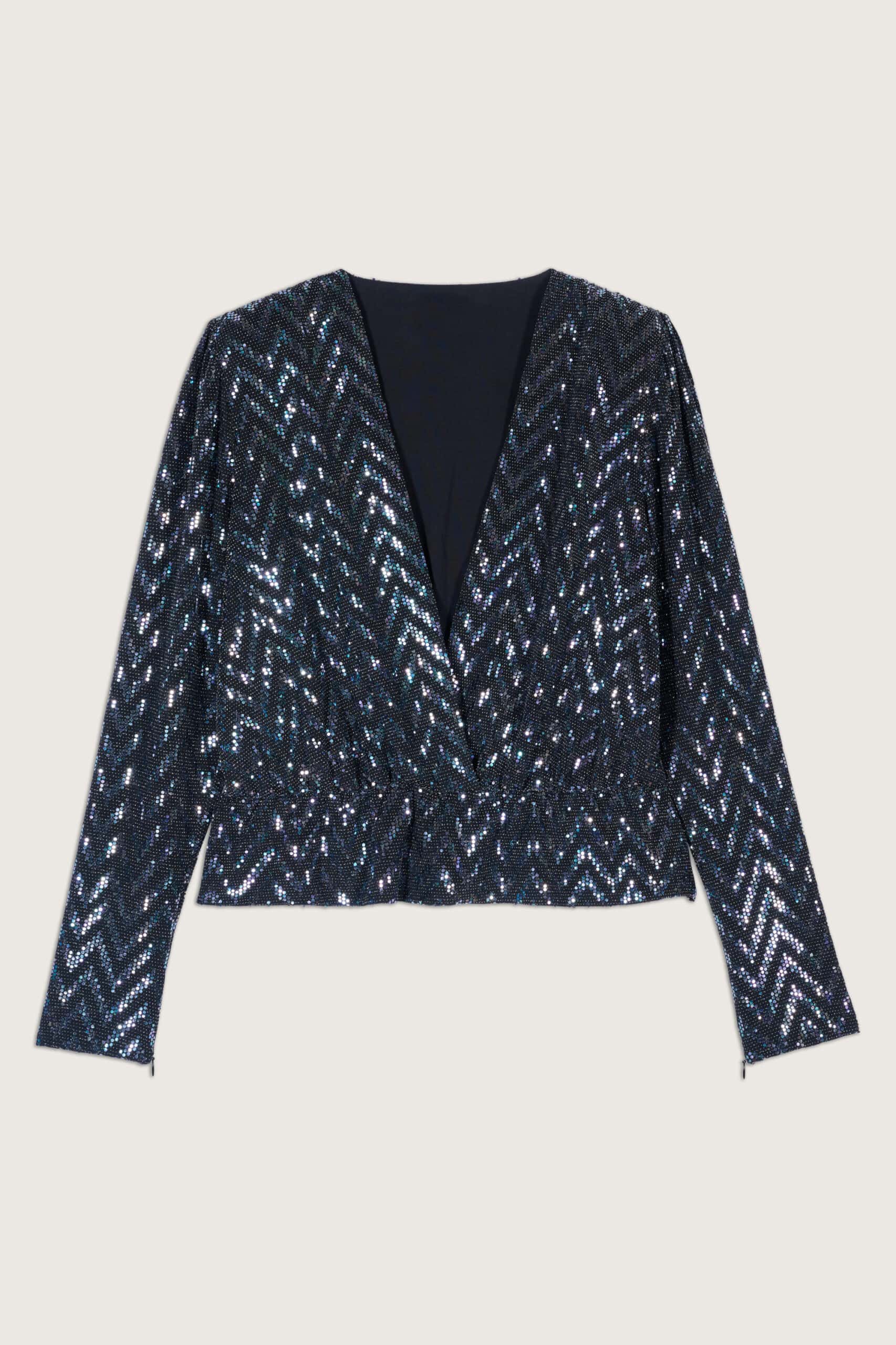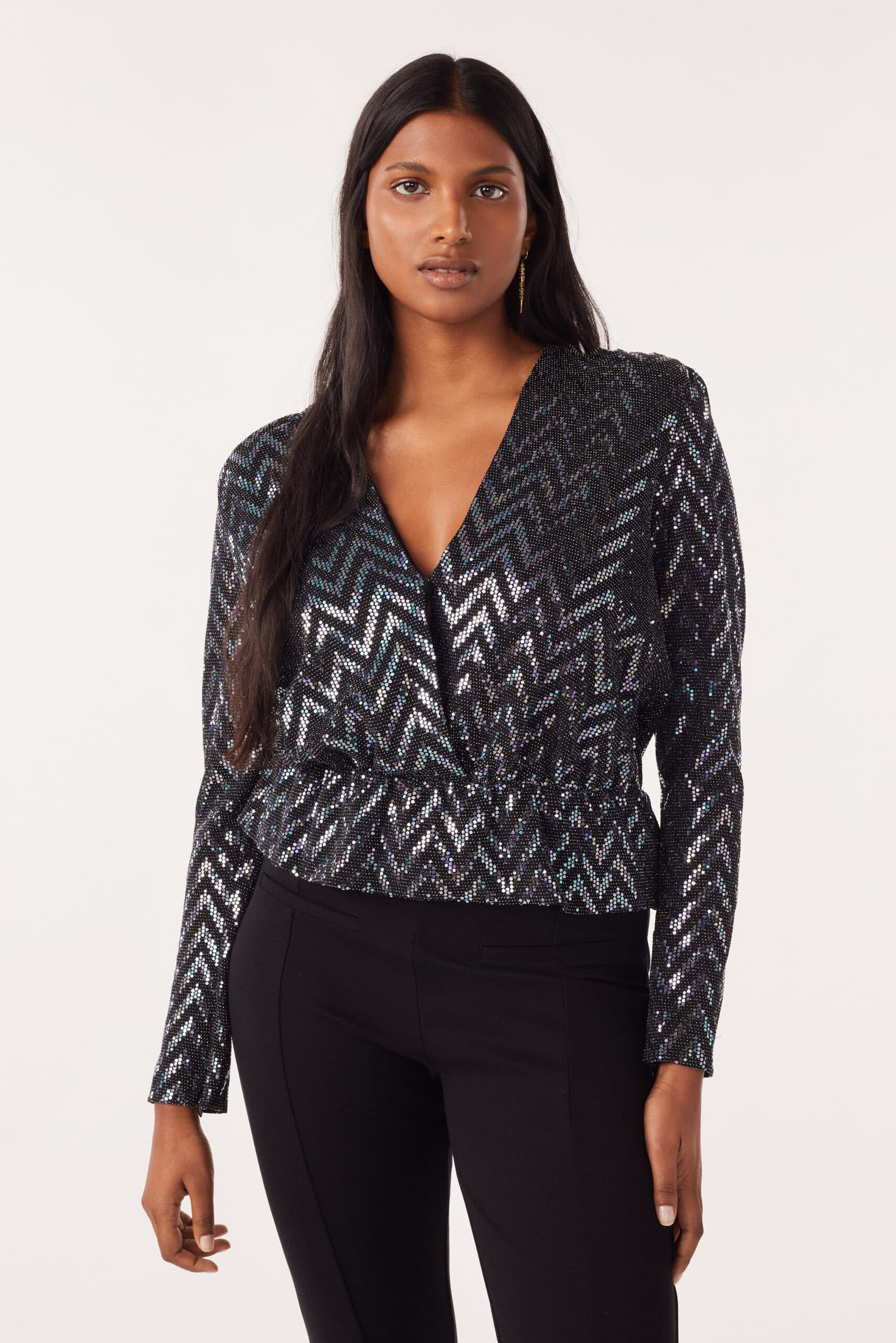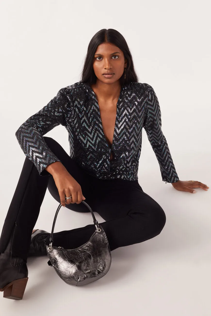 The BA&SH Filip Sequin Top Black has a deep wrapover neckline and so many on-trend details. The belted waist on this long-sleeved style is very flattering and the sparkly fabric is just so glam! Wear this top for parties with jeans, slim-fit trousers or a miniskirt. Accessorise it with a silver or coloured clutch and a necklace for a confident look.