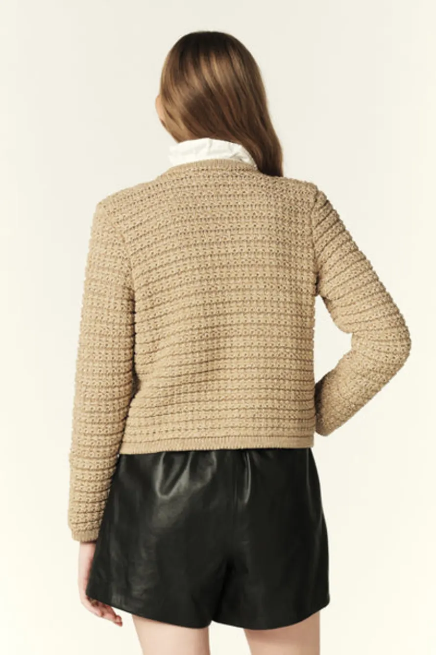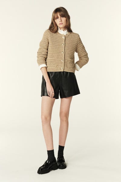 The BA&SH Gaston Cardigan Gold is a wardrobe essential. This long-sleeved model with a straight cut features a buttoned front enhanced by two side patch pockets. We love the sparkly effect created by the gold thread. This cardigan is great for everyday, whether worn over wide-leg jeans or a short skirt.