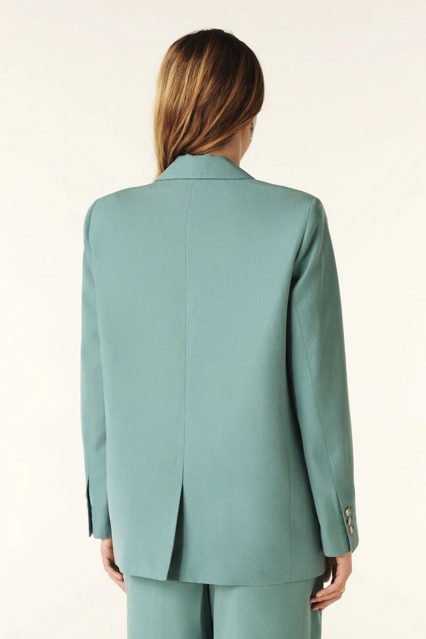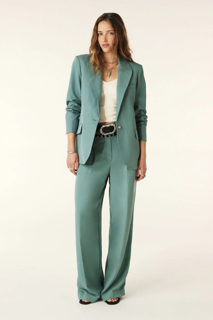 The BA&SH Gayne Jacket Vert offers a tailored, sophisticated look with modern details. Featuring a fitted silhouette, this jacket is designed with a flattering V-neckline and a notched collar for a timeless, chic appeal. The button closure and contrasting buttons add a unique touch, while the patch pockets, chest pocket, and buttoned cuffs provide functionality. With subtle shoulder pads for added structure, this jacket combines style and practicality.