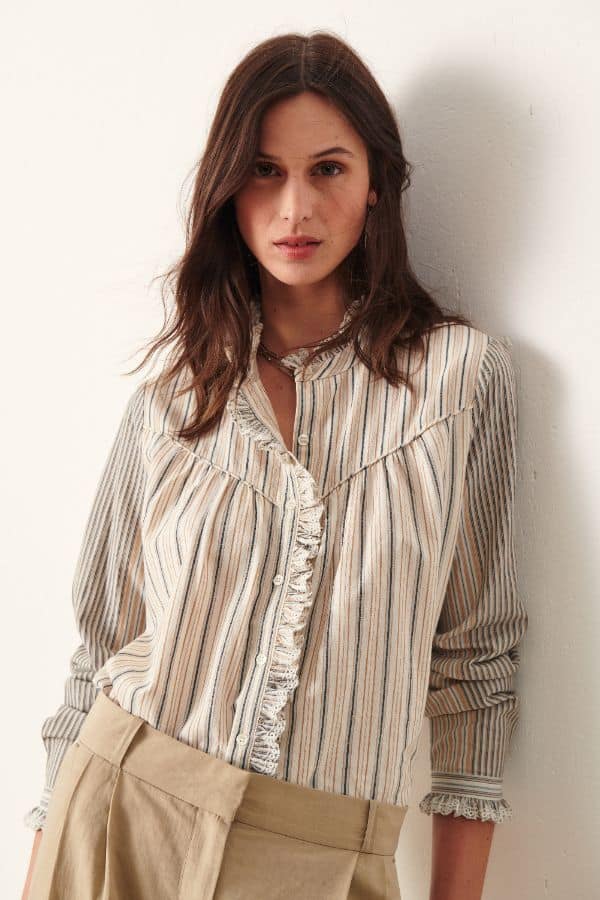 The BA&SH Hocine shirt in ink is a regular fit, long sleeved shirt with a mixed floral and frieze design. The shirt has a button front fastening, button cuffs and a pleat down the centre back. Such a simple yet beautiful design that instantly lifts your outfit. Style with denim for that elevated casual look.