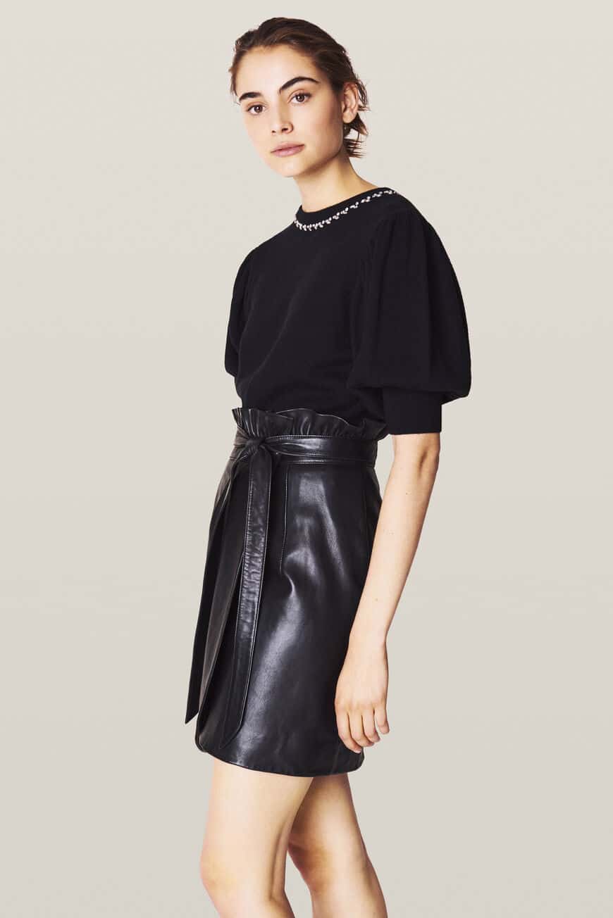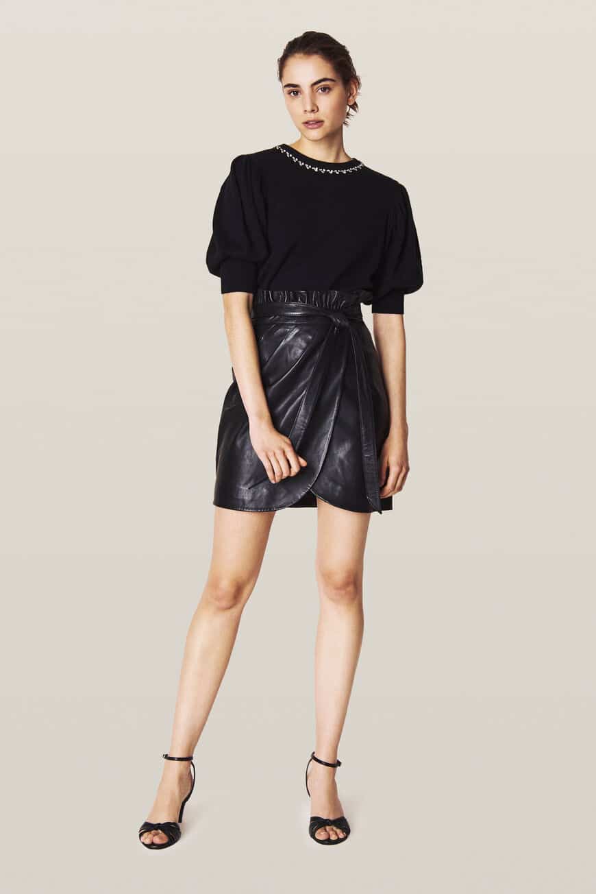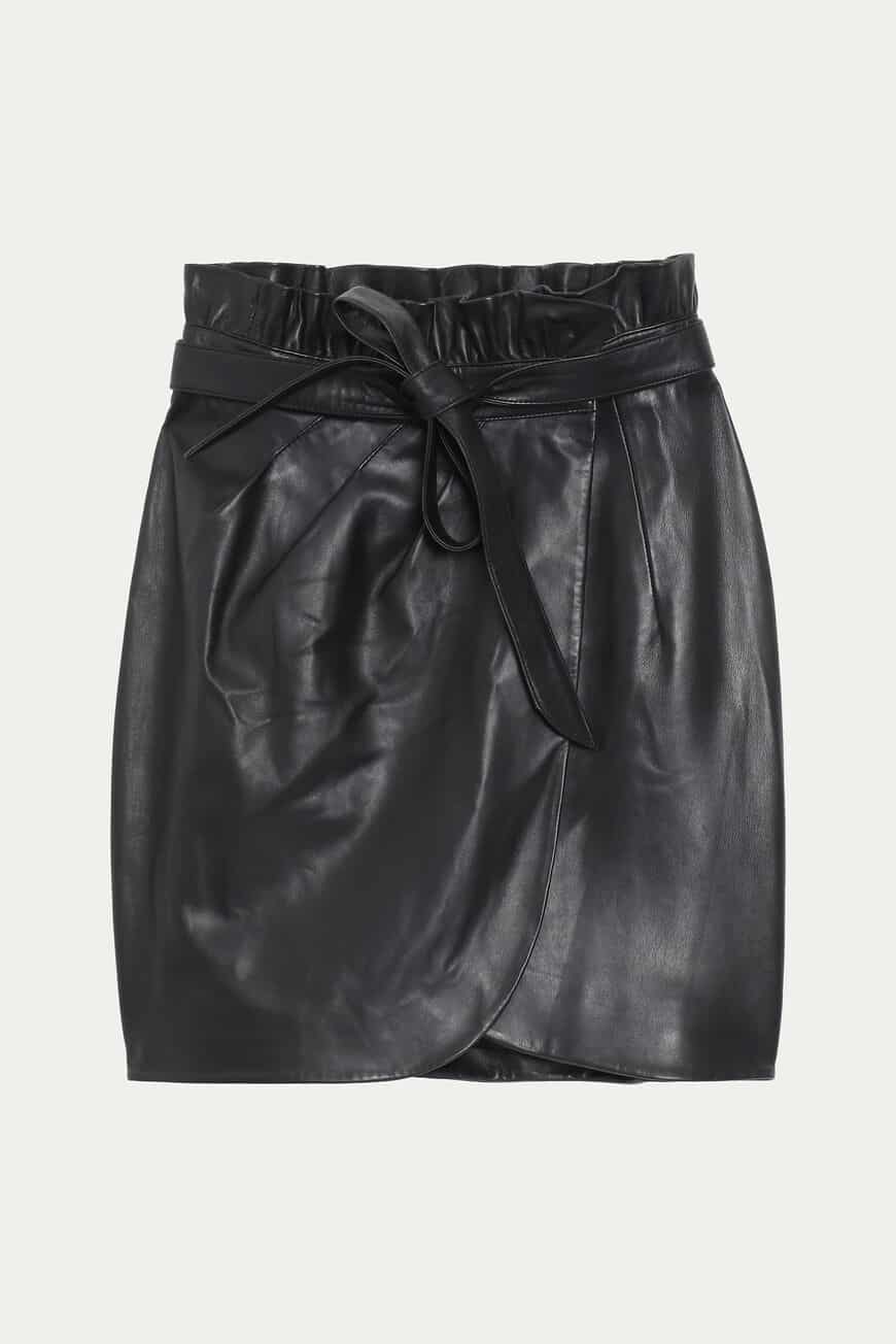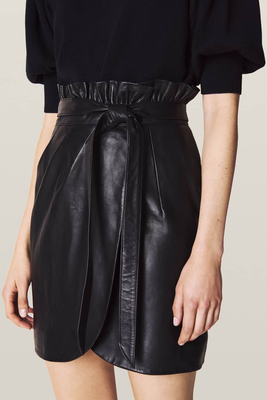 The ba&sh LUNA Skirt in Black is revisited with rock'n'roll inspiration. Cut in a quality leather, this wraparound skirt, with press-studs, has a frill waistband which gives the illusion of an oversize skirt tied in haste. You'll love the front rounded panel and diagonal pleats which add texture. A leather skirt that's simultaneously rock'n'roll and feminine.