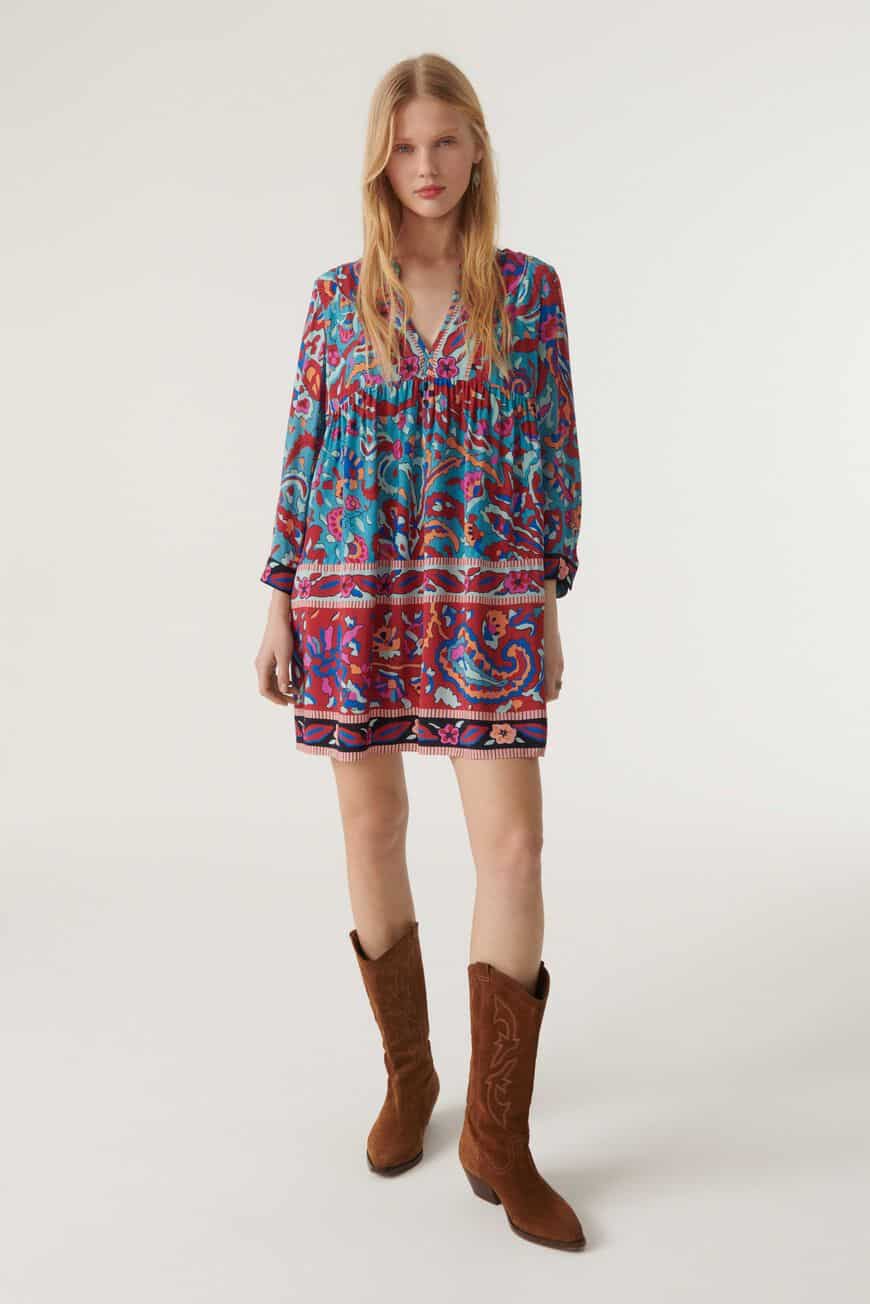 The BA&SH Maureen Dress Bleu is a gorgeous mini dress that has a relaxed, cosy fit and is composed of soft, flowing viscose. It has a cute Henley neckline and long sleeves. It will rapidly become one of your most essential pieces in your wardrobe because it is both stylish and easygoing! We adore the trim that is at the neckline and hem. For the ultimate boho style, pair with high-heeled sandals and a wide-brimmed hat.