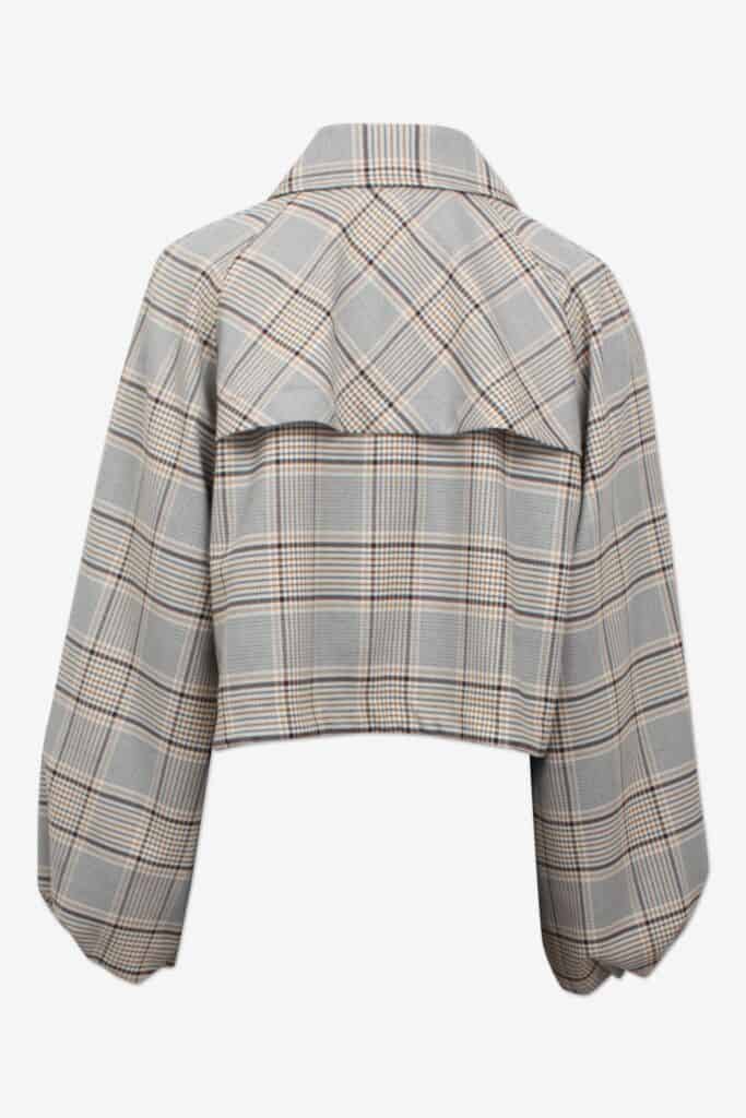 The Baum und Pferdgarten Blair Jacket in Hounds Check is a cropped jacket with blouson sleeves, buttons down the front and drawstrings at the hem. Team with wide leg trousers or denim and a casual tee for a chic daytime look.