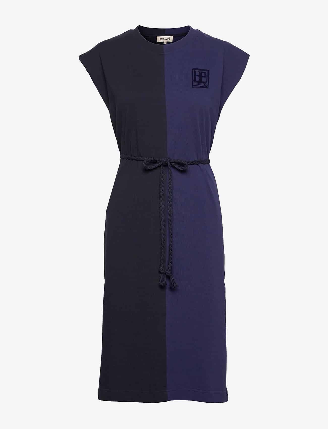 The Baum Und Pferdgarten Jiri dress in night sky is the perfect dress for effortless casual style. The dress is knee length with a raised BP logo on the chest and a plaited belt at the waist so that you can nip it in at the waist if required.