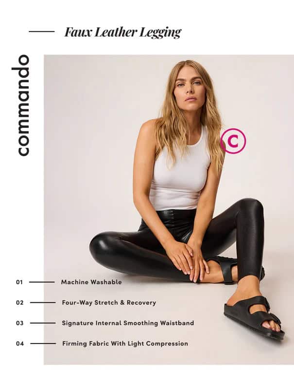 The Commando Faux Leather Leggings in the limited release colour Espresso feature their signature internal smoothing waistband made from a firming fabric that doesn't bag or sag even after hours of wear. The faux leather is soft but flexible with four-way stretch and recovery and even better, these faux leather leggings are machine washable.