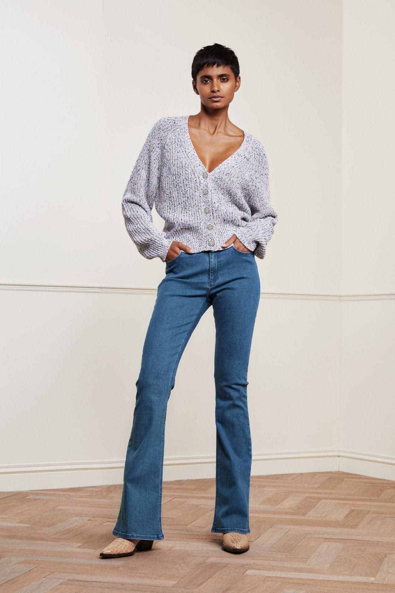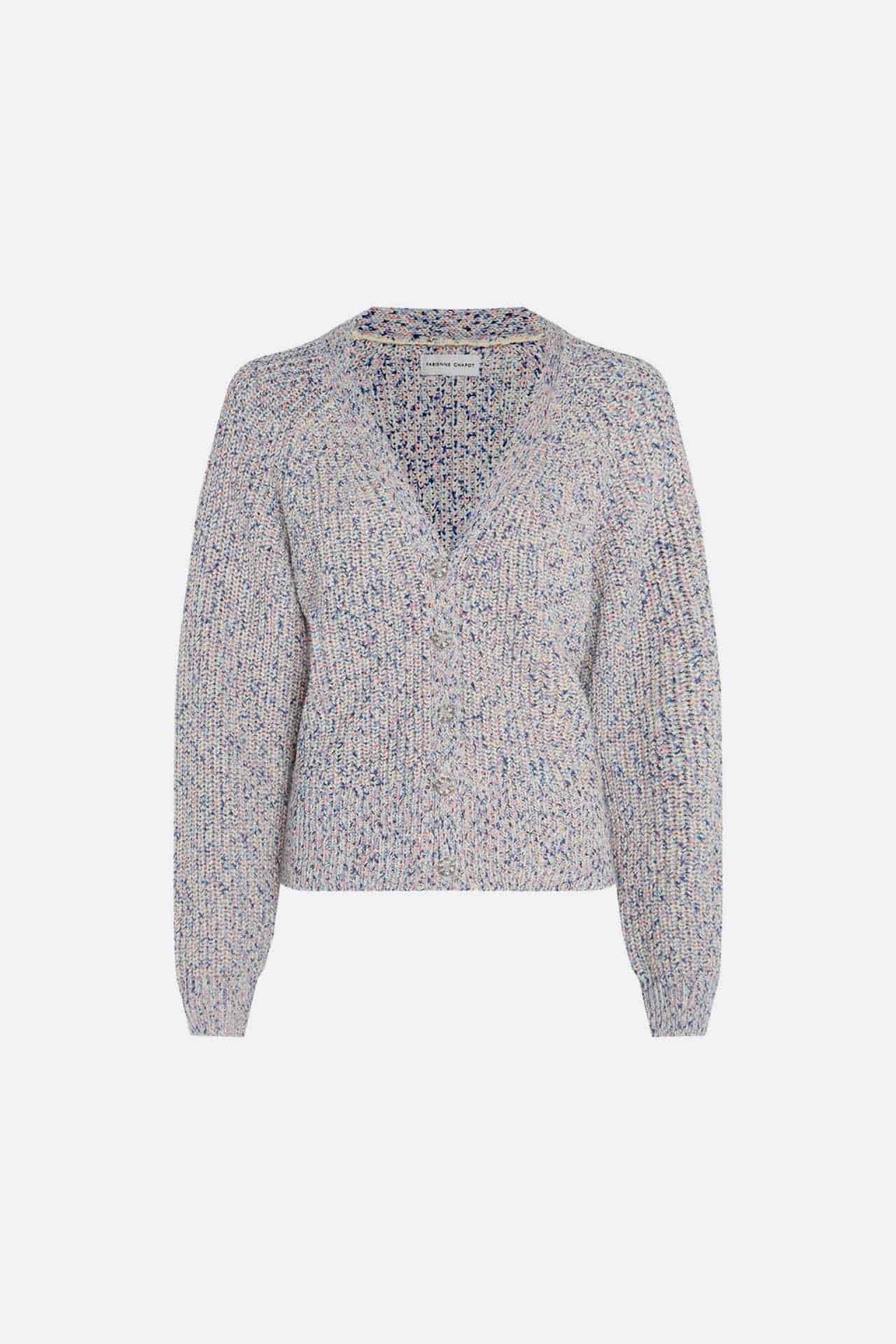 The Fabienne Chapot Confetti cardigan in cream white and trippy pink is a beautiful v-neck multicoloured cardigan that fastens at the front with ornate transparent buttons. The various hues in this cardigan are perfect for wearing with denim, just decide whether to layer it for a more casual look or wear it on its own fastened to dress up your jeans.