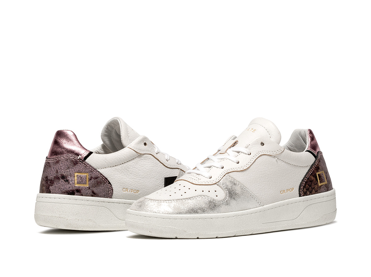 Introducing our new shoe brand for aw20 - D.A.T.E is an Italian premium sneakers brand based in Florence since 2006. These D.A.T.E Court Pop Python Trainer are white leather low-top Sneakers. Perforated toe for extra breathability. The leather tongue features a D.A.T.E. embossed lettering Cotton laces and square logo etched at side. Code and small TPU flag with Court embossed lettering on the outer side of the right shoe. Pink laminated leather back patch. Python print-effect leather back detail with embossed square logo. Leather and cotton terry lining. The 2.5 cm-high raised insole allows for optimal comfort. 2-3.5 cm high sole in rubber. All fabrics and hides used are Made in Italy. For an effortless contemporary look, style with a printed skirt, dress or your favourite denim, the choice is yours.