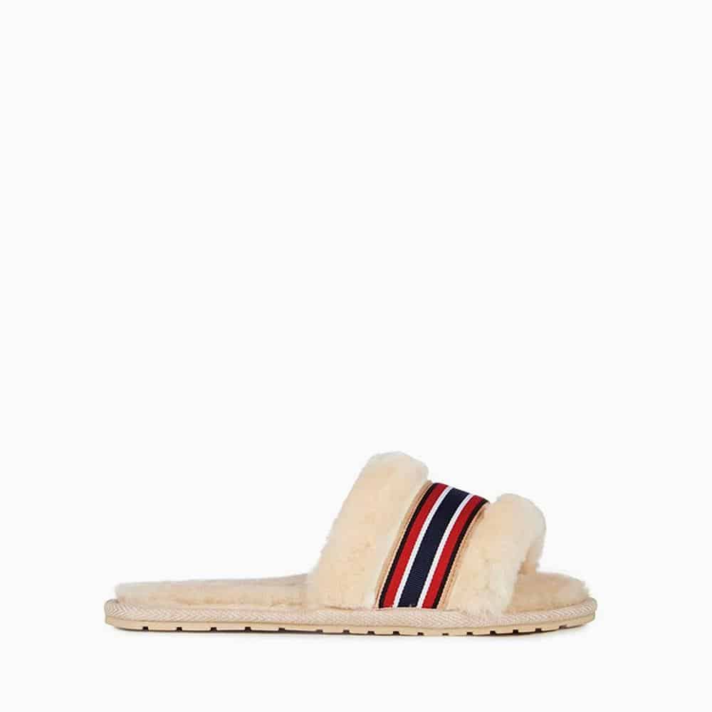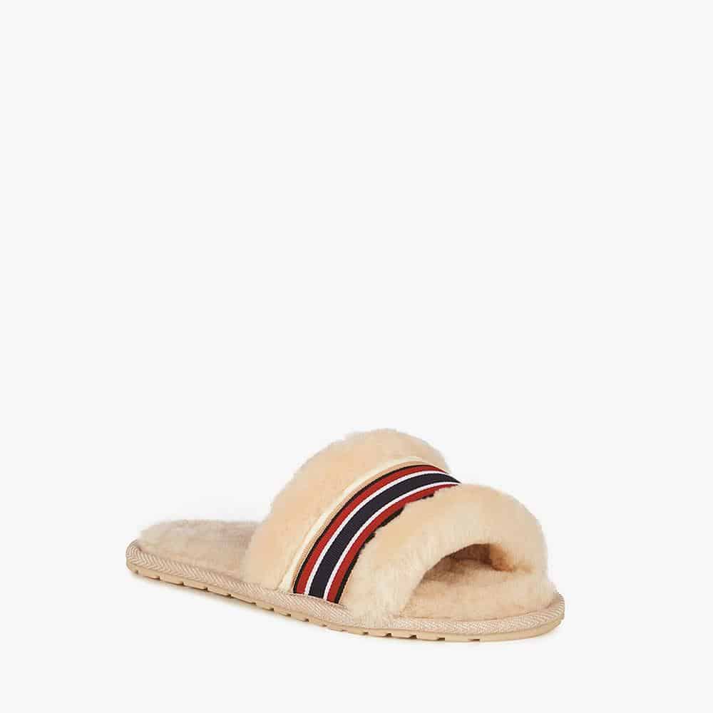 The EMU Australia Wrenlette slippers in natural injects a fun and fashionable twist into the everyday slide. The slippers have a wide, soft Australian sheepskin band across the front of the foot that delivers comfort and a pop of colour. Plush sheepskin is used in the footbed to provide great next to skin comfort. Meanwhile, the lightweight and flexible rubber outsole offers traction both indoors and out. Ideal for keeping your feet warm around the house, or wearing out during the summer, the wrenlette slipper really adds a touch of style to the everyday. In 100% real Australian sheepskin it’s trendy and fashionable, but also super comfortable and warm.