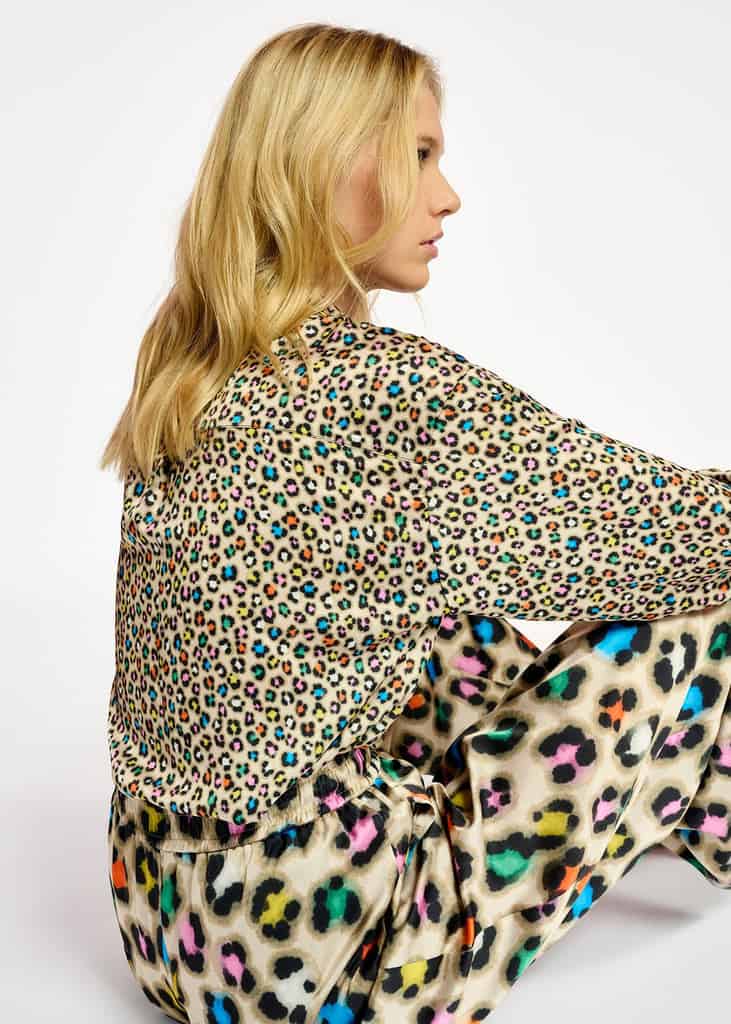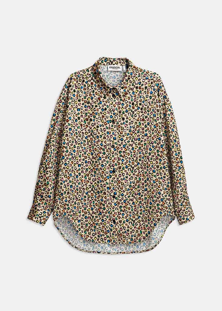 The Essentiel Antwerp Dru oversized shirt with Sequins Off White is a leopard love story. The shirt is cut from a light and breezy fabric for maximum comfort and is dappled in leopard spots which have been sequin-embellished. Other features include an oversized fit shirt with collar and button down front, long sleeves, dropped shoulders in a multi coloured leopard print.