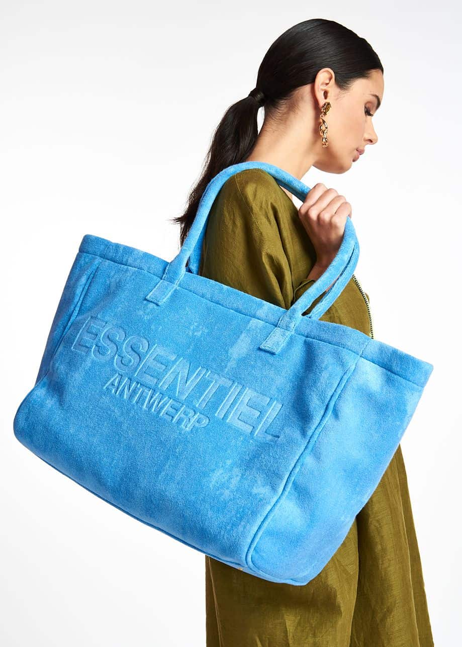 The Essentiel Antwerp Zasha large shopper bag in light blue is the perfect accessory regardless of whether you are holidaying at home or abroad. Crafted from a soft towel-like terry fabric and is embossed with the brand's logo it is large enough for all of your holiday essentials.