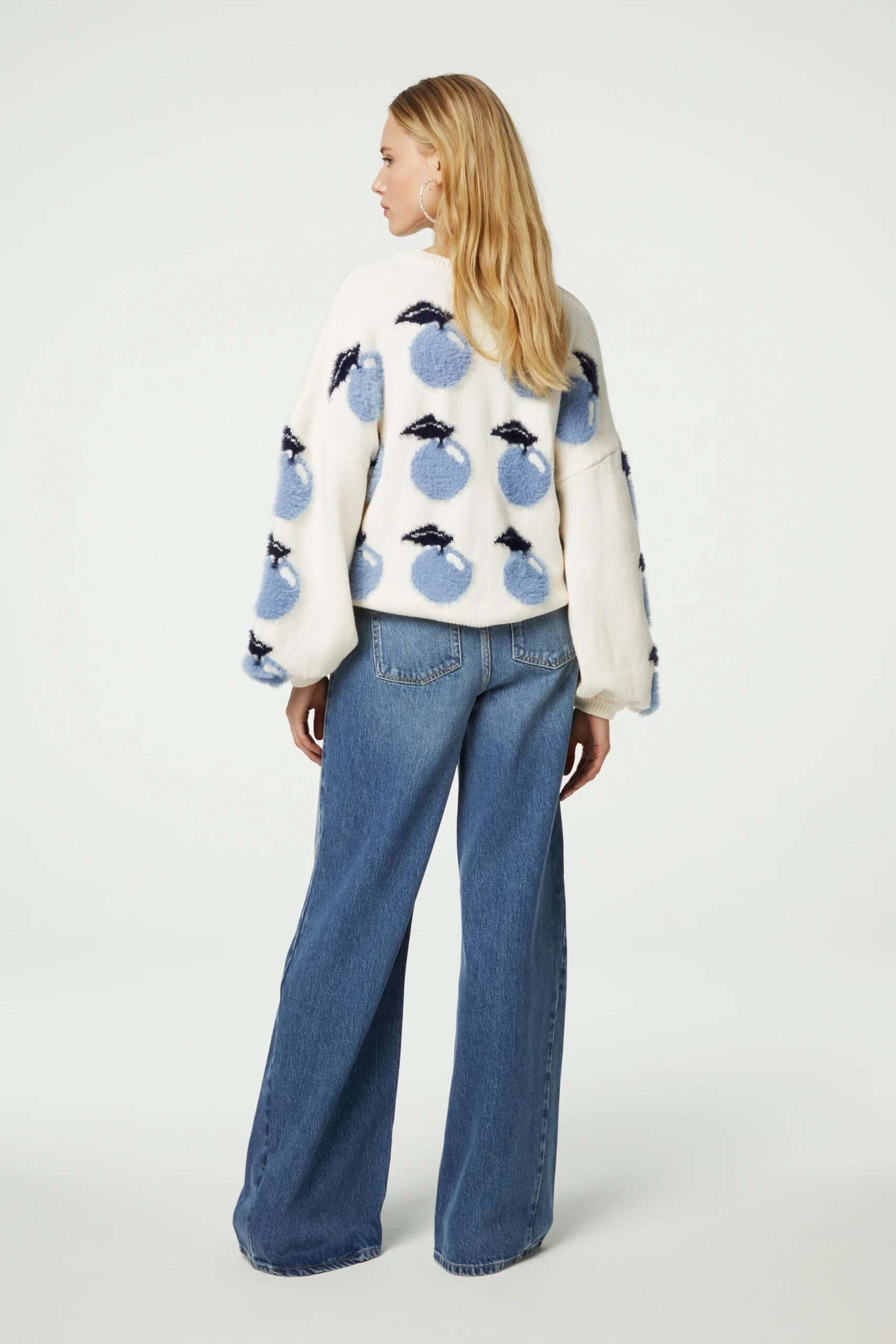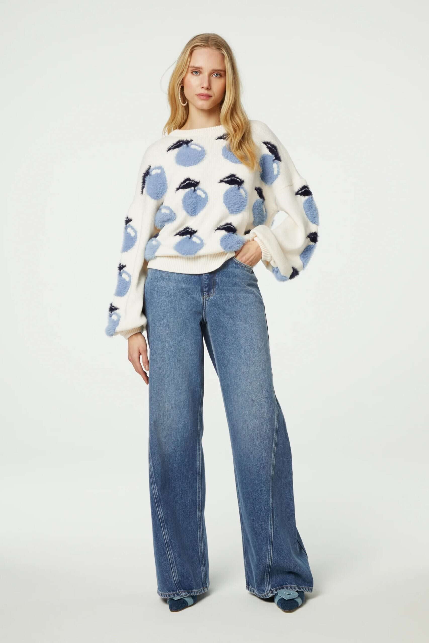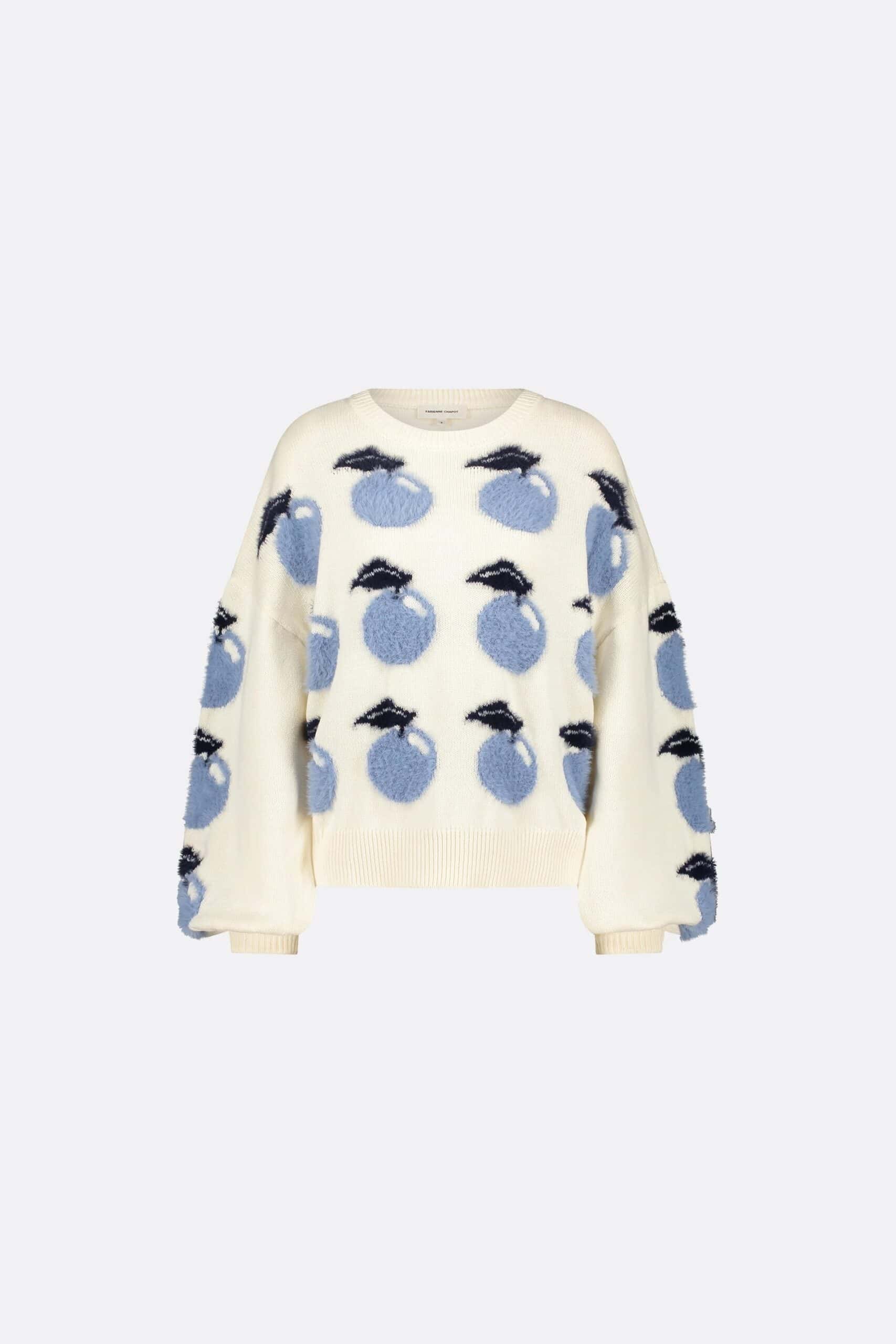 The Fabienne Chapot apple pullover in cosy white/blue is a gorgeous and fun jumper. With an off white background and a blue fluffy apple design all over it, this is the jumper that you never knew you needed. It is the perfect knit to style with your favourite denim for an effortlessly cosy look. Definitely a jumper that you will want to wear on repeat or put a smile on someone else's face as this makes the perfect gift.