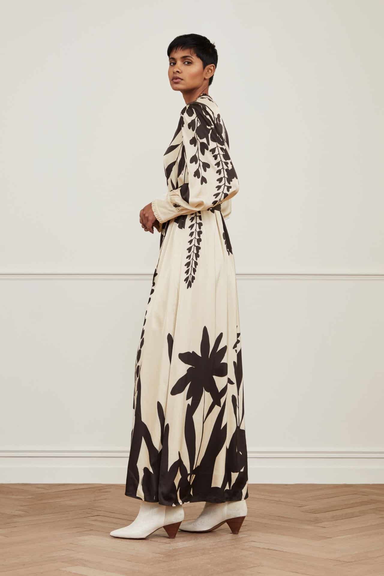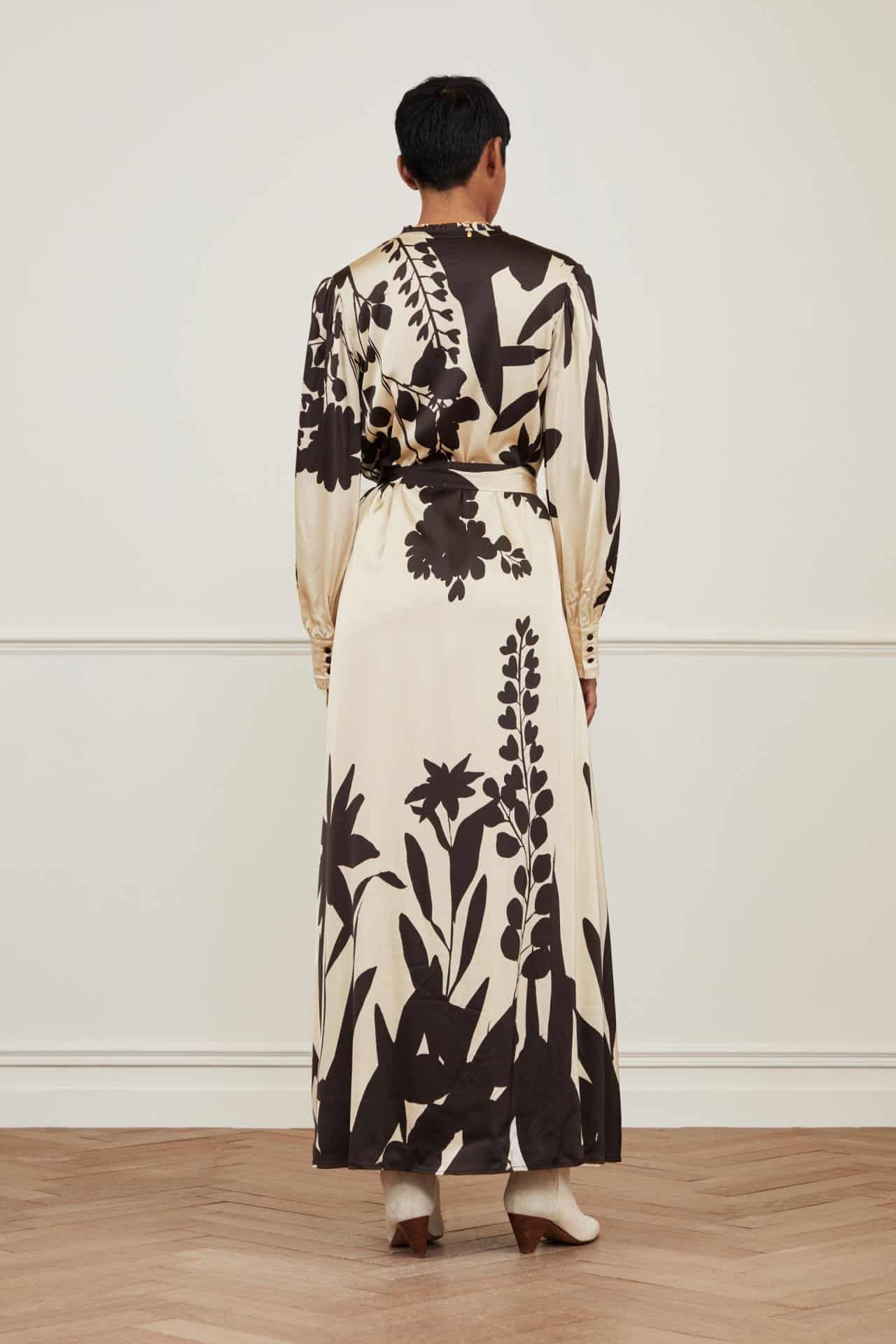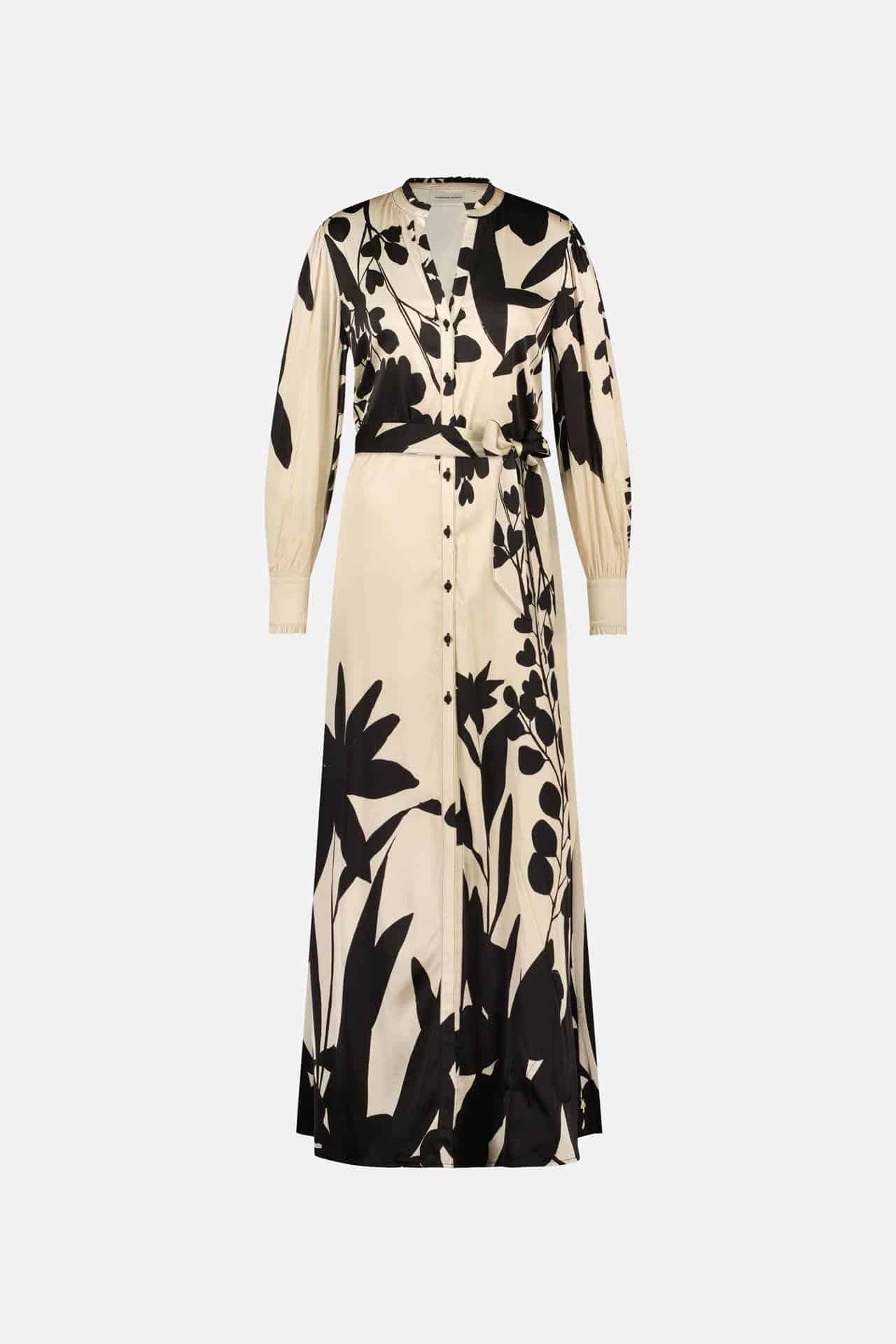 The Fabienne Chapot Erika Dress in black/warm white is a long, elegant maxi dress. Featuring a V-neck and button closure over the entire length. The Erika Dress has a tie belt at the waist and ruffles at the end of the cuffs to give the ultimate flattering and feminine shape.