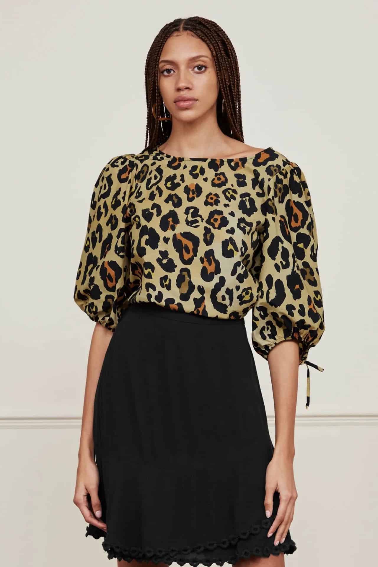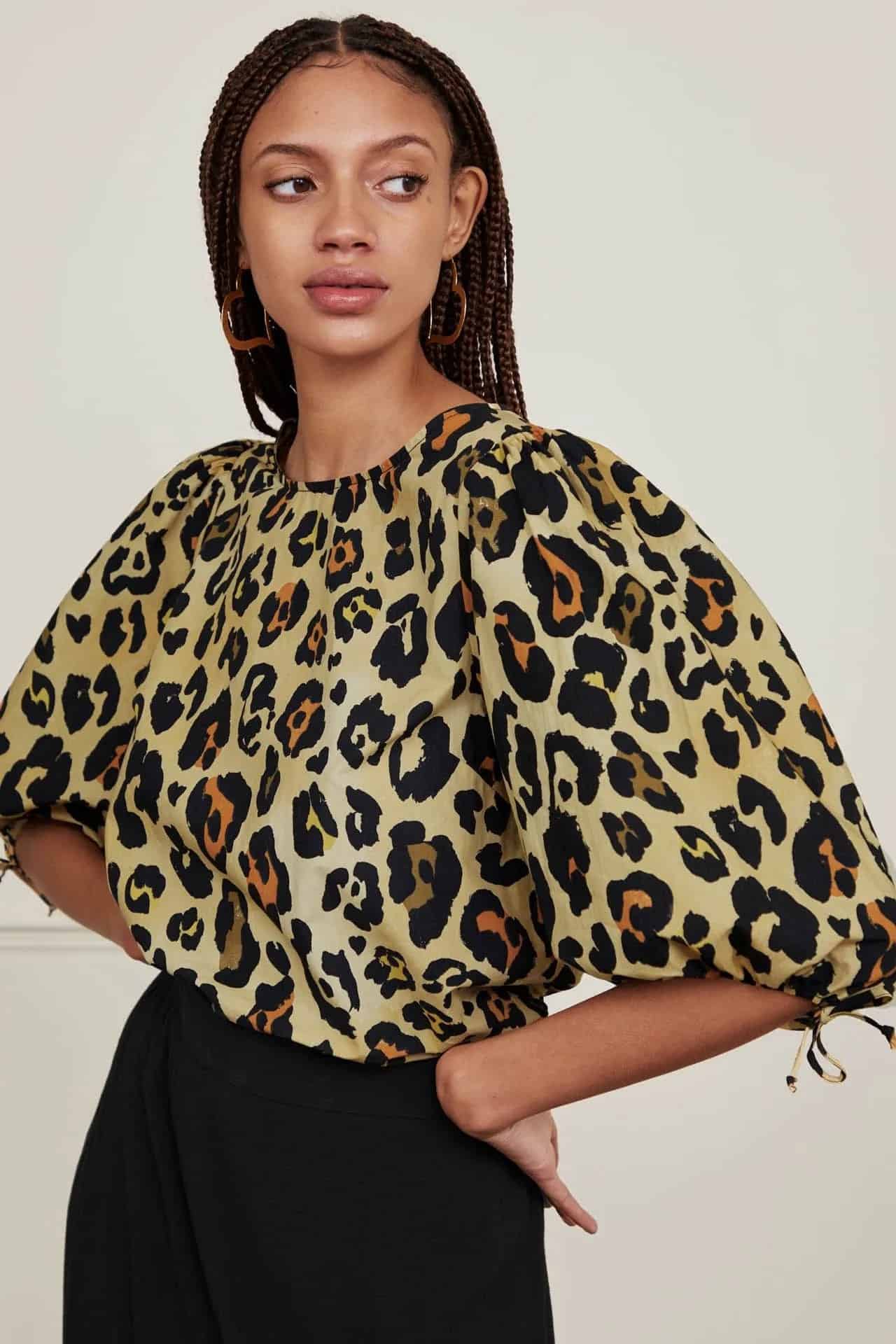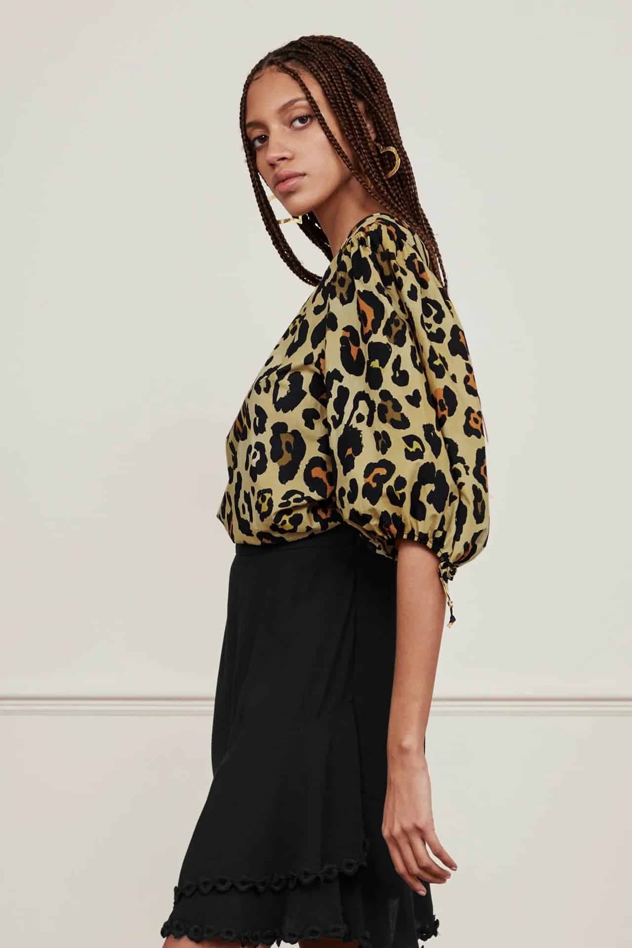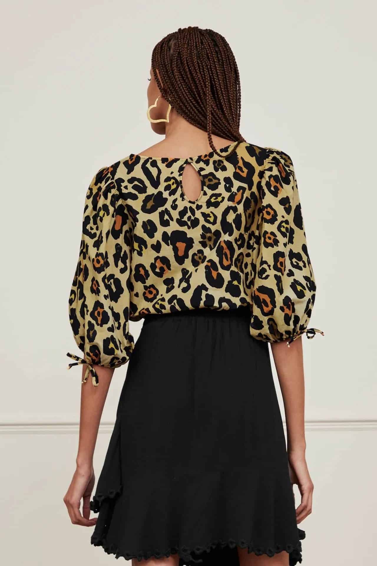 The Fabienne Chapot Jascha top in leopardo is a gorgeous cotton top with puff short sleeves and a bow detail at the cuffs. The leopard print top is perfect for those summer days and nights and looks great worn with denim in the day and then tucked into a skirt or wide leg trousers in the evening. A timeless piece that you'll be able to bring out year after year.