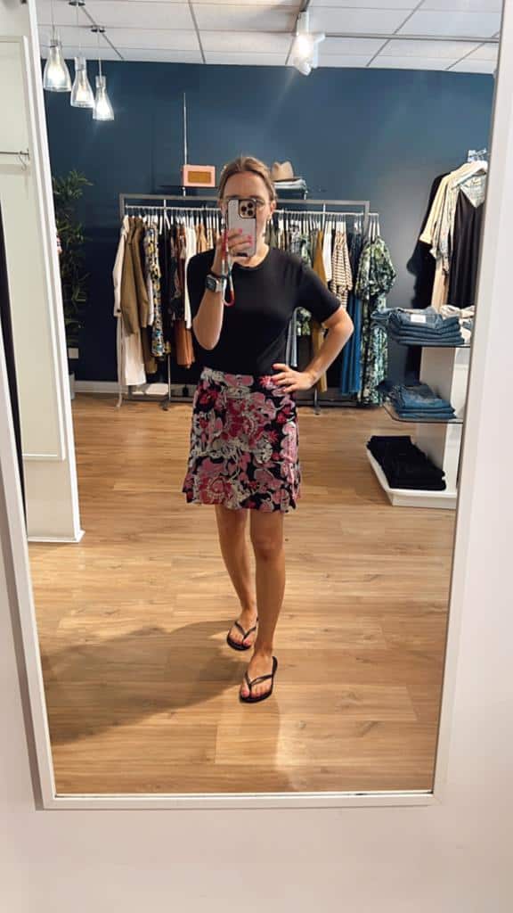 The Fabienne Chapot Lulu Skirt Bubble Gum Pink is a short skirt with ruffles and zipper closure. The Lulu Skirt has all-over "Pink Bisous" print and is made from 100% viscose. The ultimate feminine skirt to pair with your favourite tee.