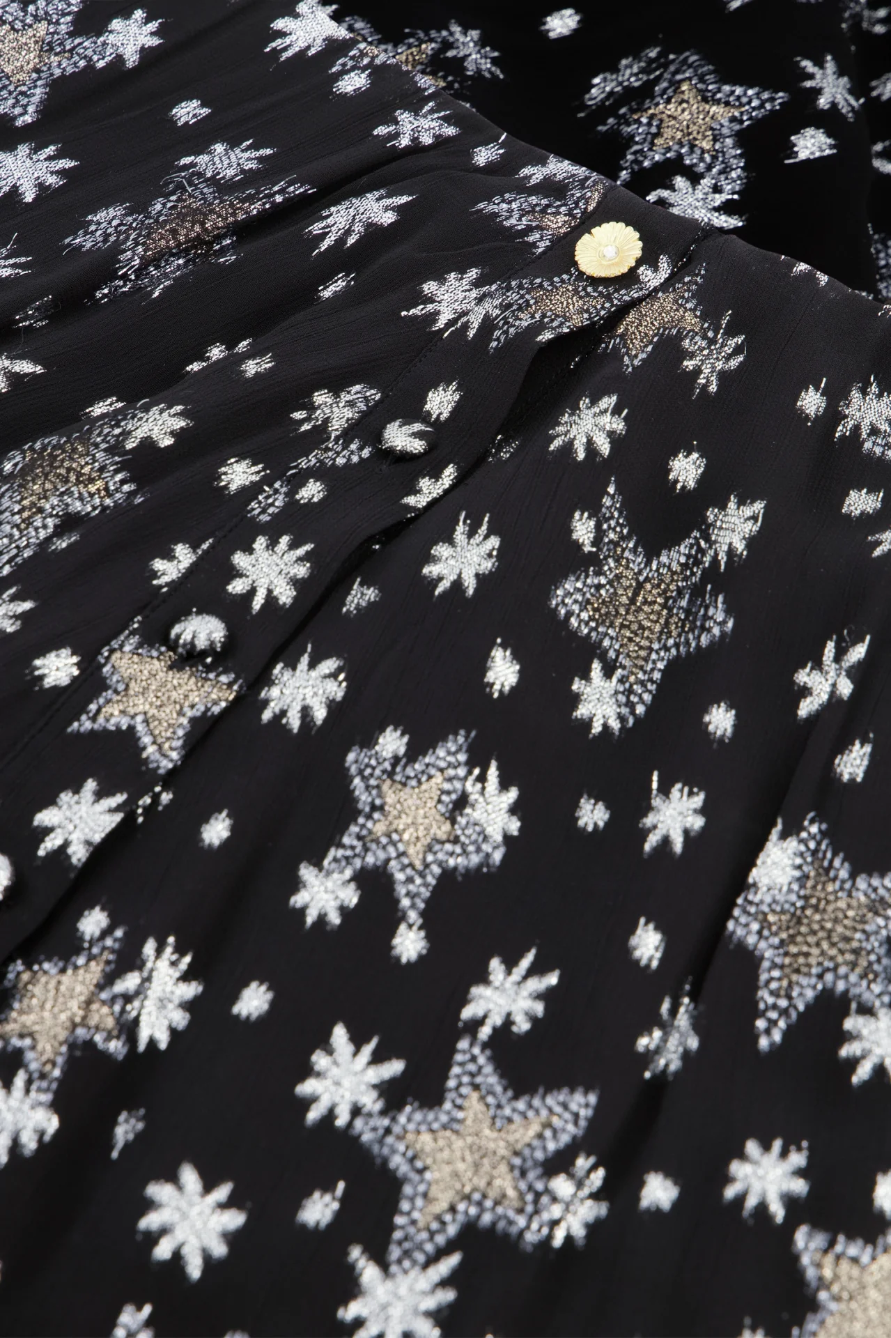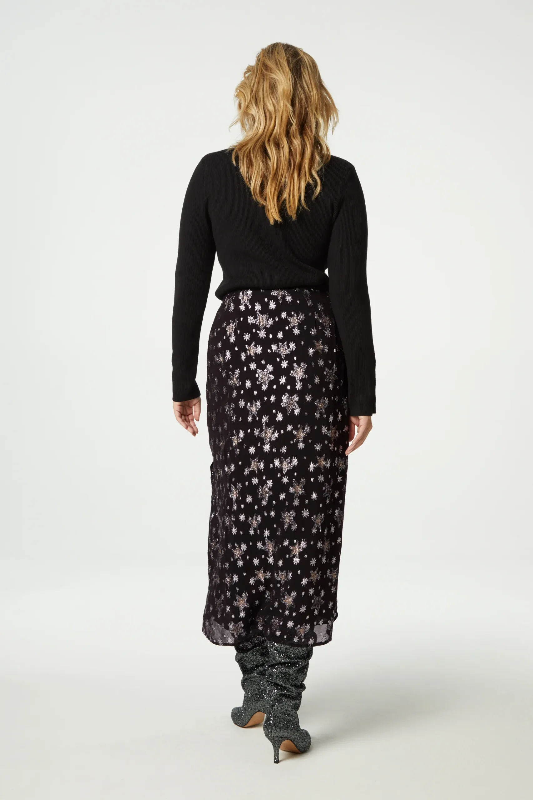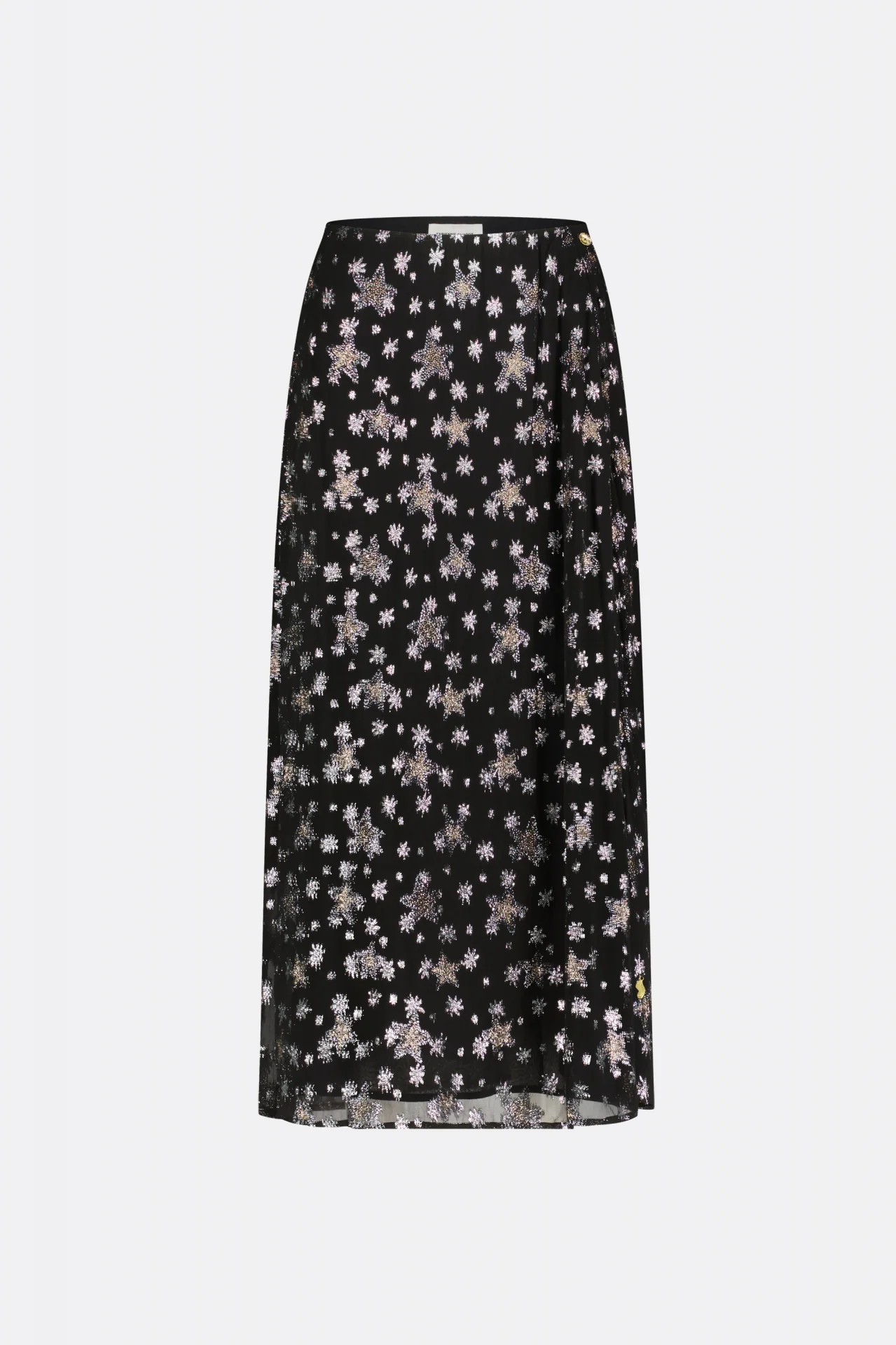 The Fabienne Chapot Lydia Skirt Starfleet is a feminine midi skirt with button closure. The Lydia Skirt has a gold-tone button and all-over "Starfleet" print to bring detail to a simplistic midi skirt. Pair with a polo neck top for a sophisticated look or style down with chunky trainers.