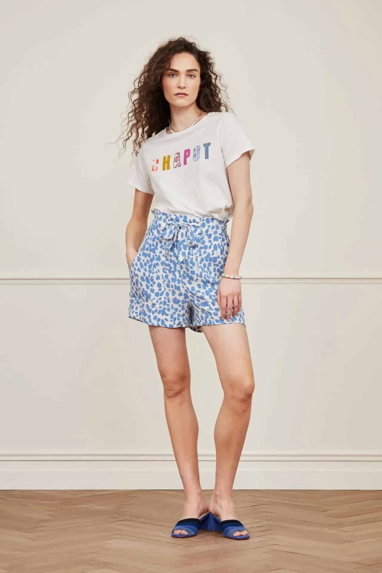 The Fabienne Chapot Olivia shorts in cream white/ocean blue are gorgeous high waisted shorts with a zip fastening, side pockets and a tie belt at the waist. These shorts are a loose fit and have a lovely blue spot print all over and can be worn casually with a t-shirt during the day or dressed up at night with heels and a cami. A lovely pair of comfortable yet stylish summer shorts.