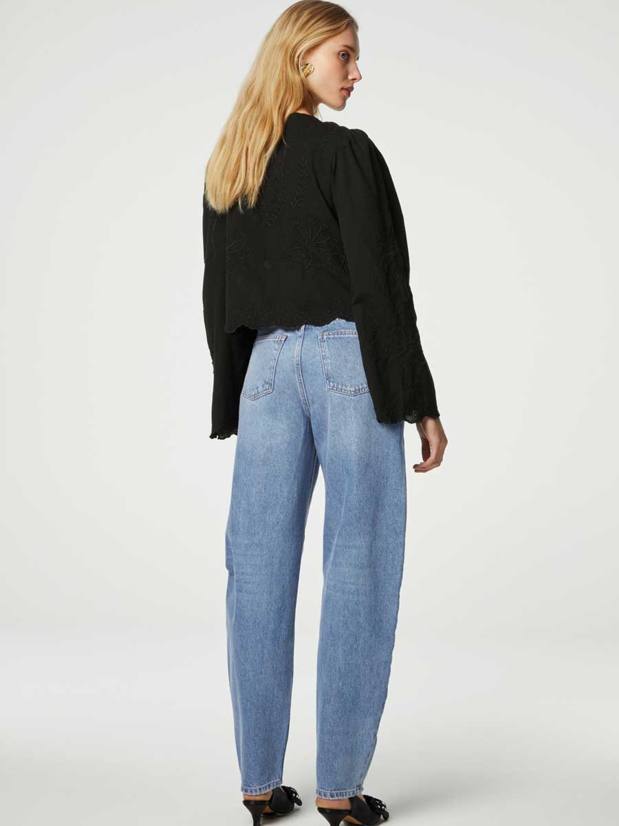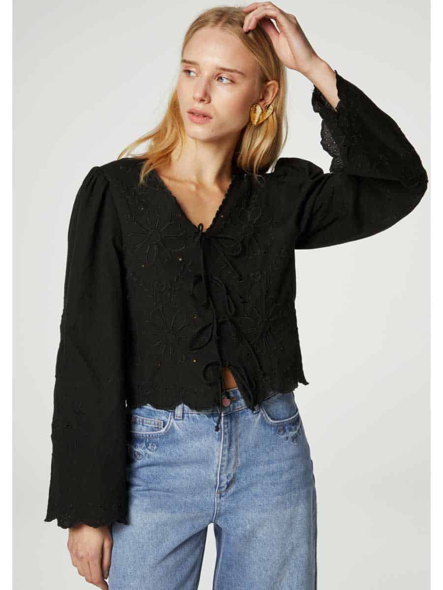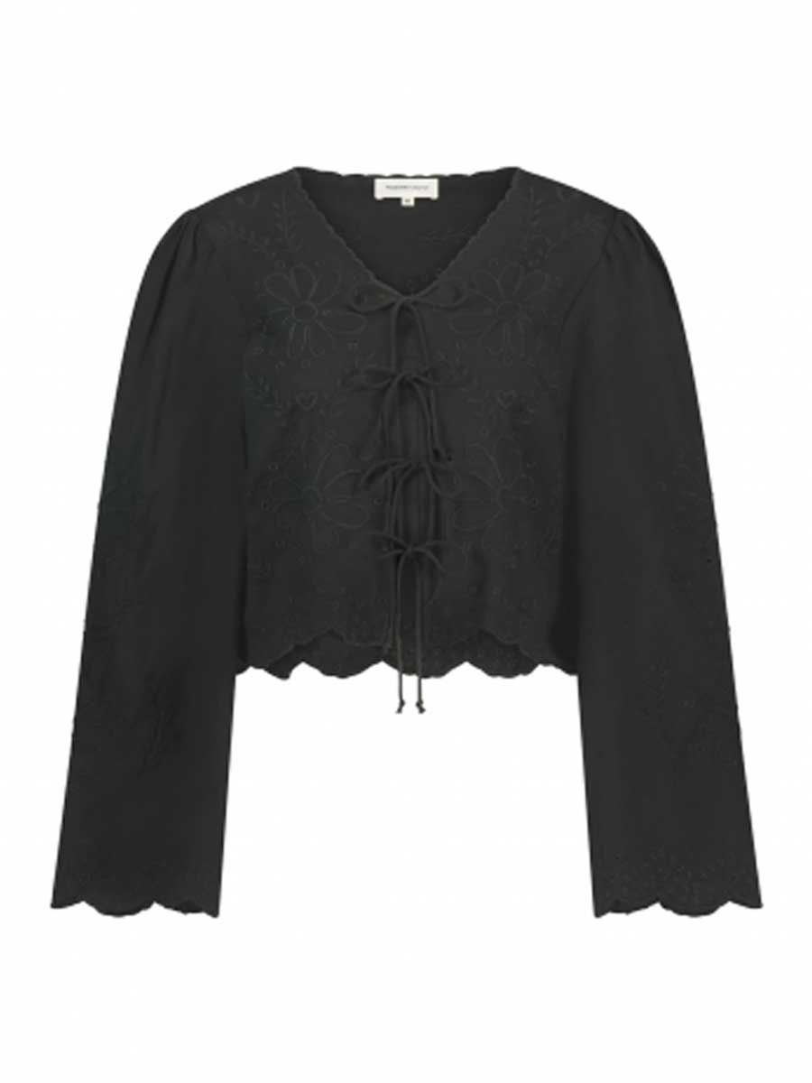 Fabienne Chapot Serre Long Sleeve Top Black is your new wardrobe essential, the long sleeve black top that everybody needs. Sterre is a feminine short black top with long sleeves and embroidered flower detail. Style the Sterre top with the Fabienne Chapot Lucy wide leg jeans for an effortless look.