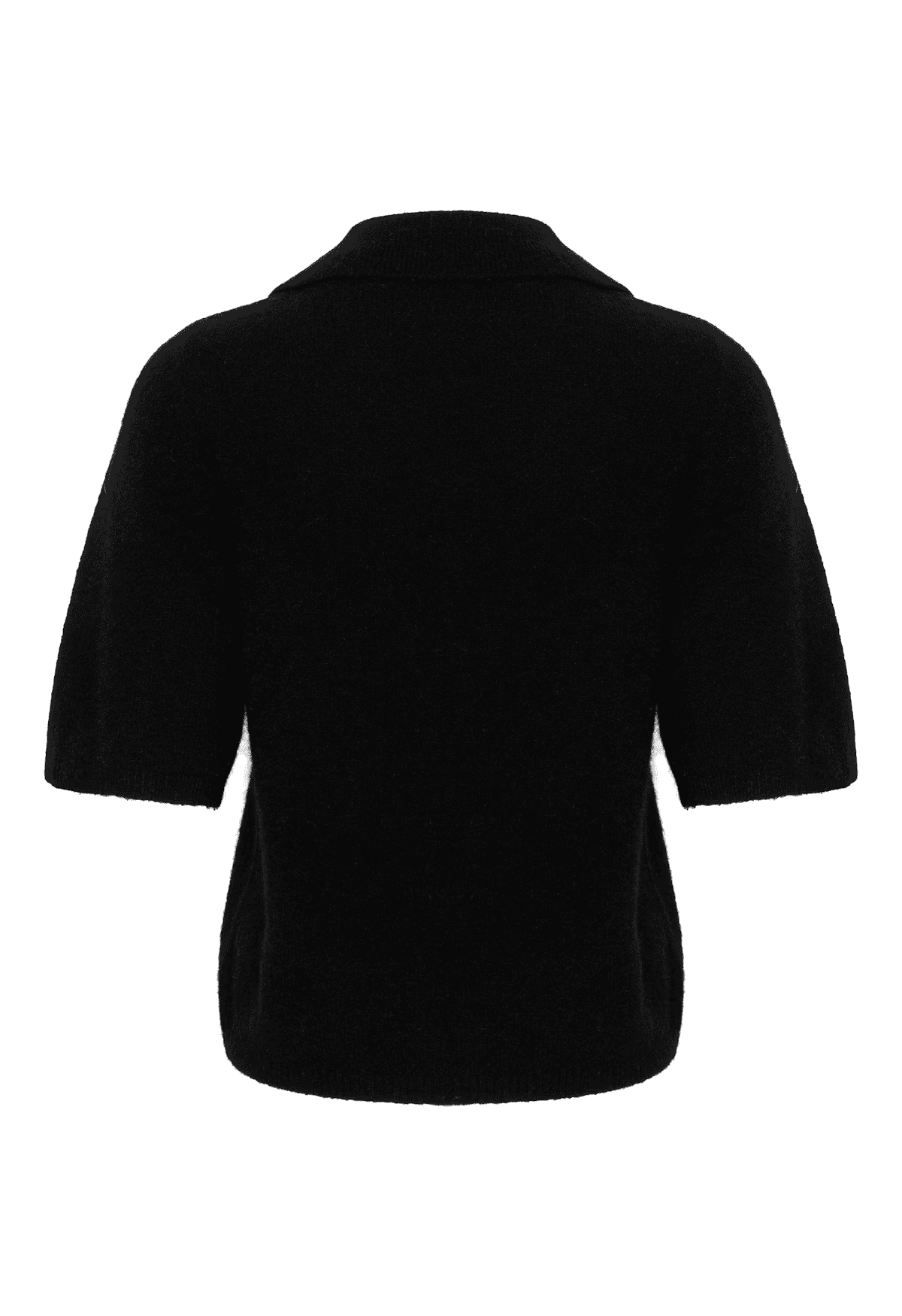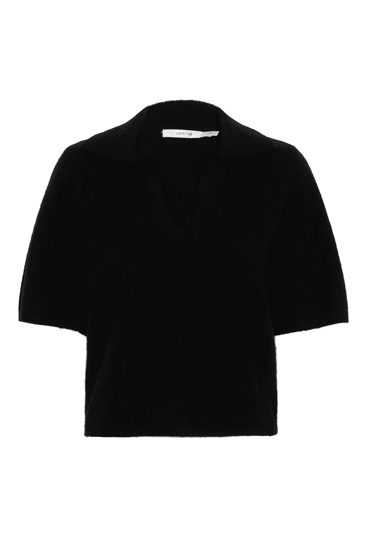The Gestuz AlphaGZ short sleeve pullover in black is a alpaca and wool mix jumper with elbow length sleeves. The collared, v-neck jumper has a regular fit and is the perfect option to wear on those cooler days or evenings. Style it with your favourite denim or trousers for a stylish day look.