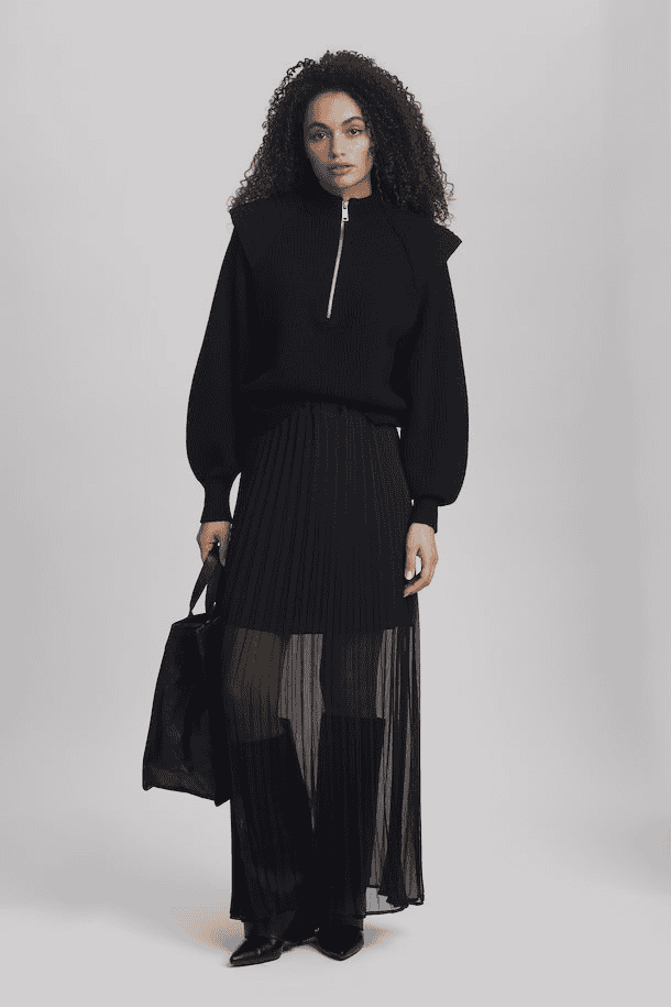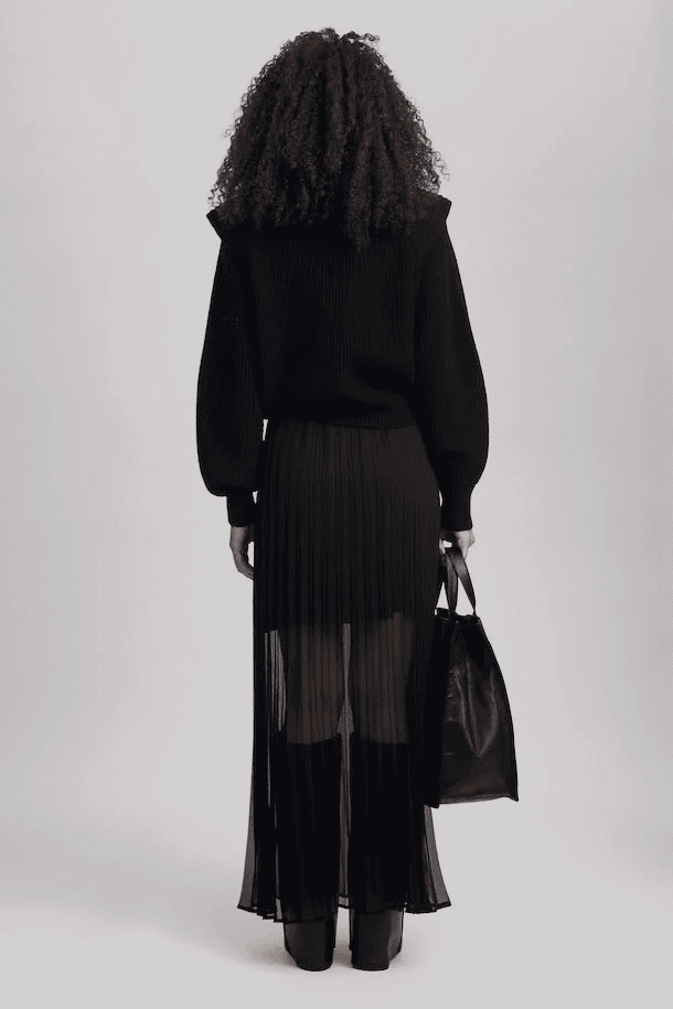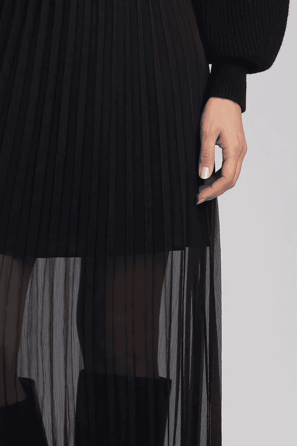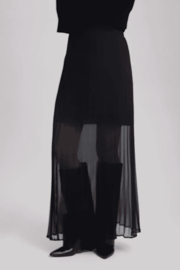 The Gestuz AnastaziaGZ high waisted skirt in black is a full length, sheer pleated skirt. Featuring an elasticated waist and a short black lining underneath, this skirt is the perfect for elevating your daily outfit. Style with boots and a chunky knit such as the Second Female Brookline Knit Raglan O-Neck Black or the Second Female Capella Knit T Neck Brazilian Sand