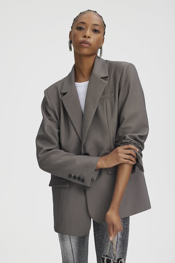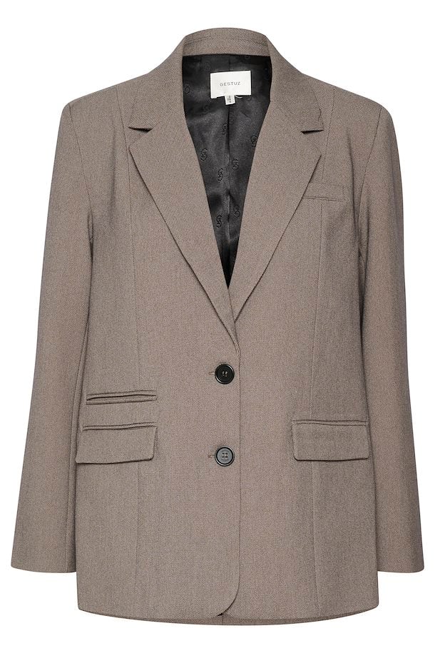 The Gestuz AncieGZ Blazer Grey Structure will add a touch of elegance to your wardrobe with this woven blazer by Gestuz. Designed with a box fit and mid-thigh length, it provides a flattering silhouette. Pair it with the Ancie trousers or a comfortable t-shirt for a versatile look.