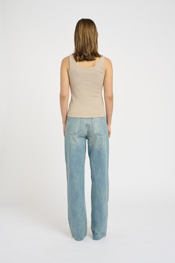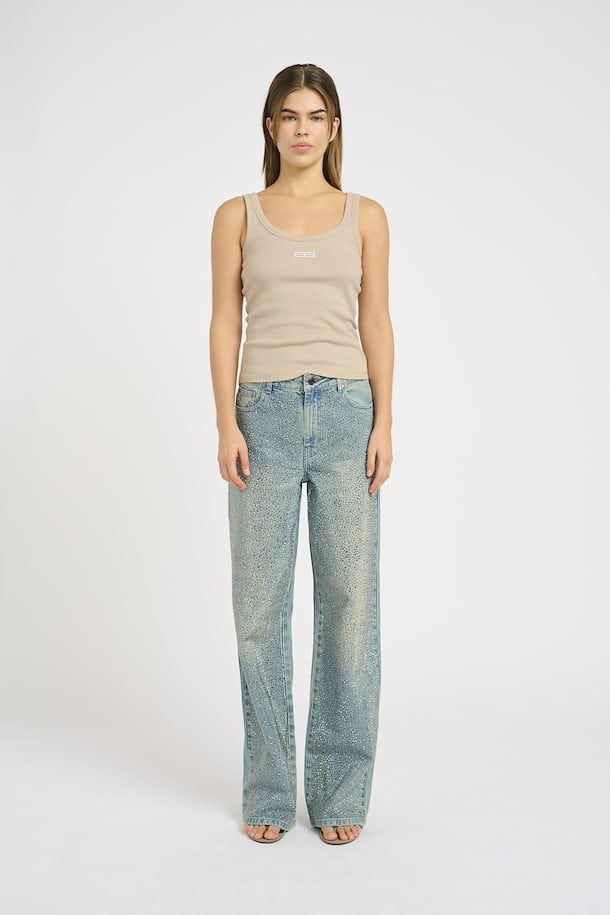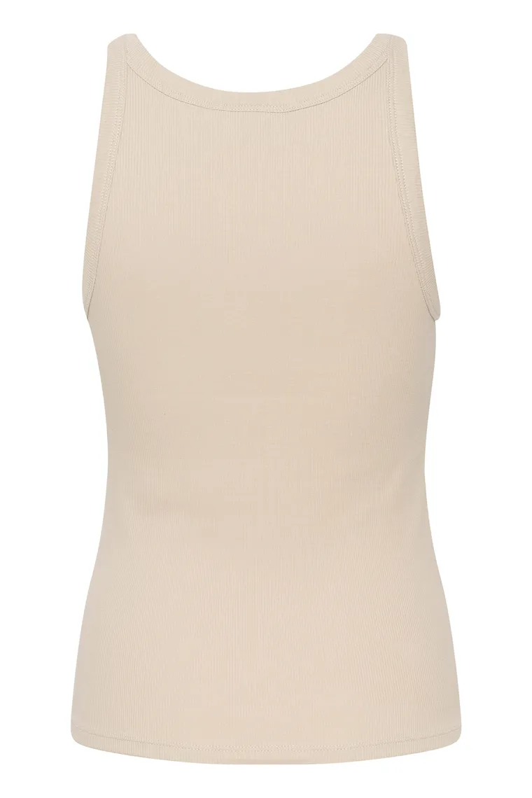 The Gestuz DrewGZ Sleeveless Logo Vest Island Fossil is an elevated basic. This simple vest top features a racer back necklines, sleeveless sleeves and a statement classic Gestuz logo in the centre, in a flattering slim fit. Style layered under the Liza Linen Blazer in Stone and with the Liza Linen Trousers in Stone for an effortless stylish look.