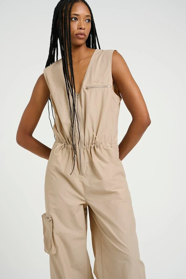 The Gestuz EsmanaGZ Jumpsuit Island Fossil brings utility and style together perfectly. This jumpsuit features a flattering drawstring cinch waist to flatter your shape, a utility style zip pocket and cuffed bottoms. Dress up with stilettos or get a more casual vibe with chunky trainers and sunglasses.