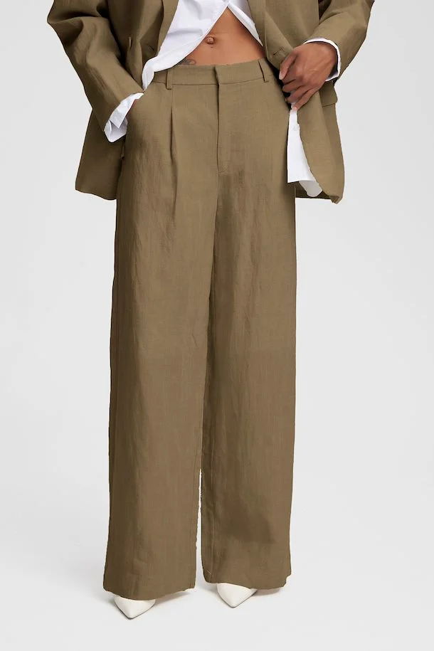 The Gestuz LizaGZ Linen High Waisted Pants Stone GrayGestuz LizaGZ Linen High Waisted Pants Stone Gray are formal meets casual wear. These linen trousers feature a straight leg fit with high waist and full length with belt hoops for added detail. Style with the Gestuz DrewGZ White Logo Vest layered under the Liza Linen Blazer in Stone for a full effortlessly stylish look.