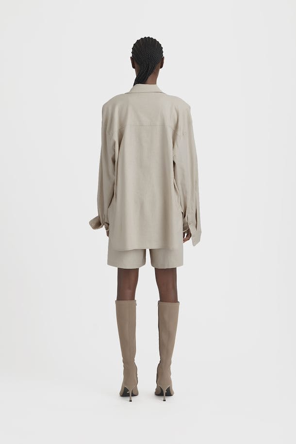 The Gestuz LizaGZ Oversized Linen Shirt Ancient Scroll is the perfect layer for warmer days. This lightweight linen shirt is in an oversized fit, mid length and features full button down. Pair this layered over the DrewGZ Logo White Top with the matching Liza Linen Shorts for a stylish summer outfit.
