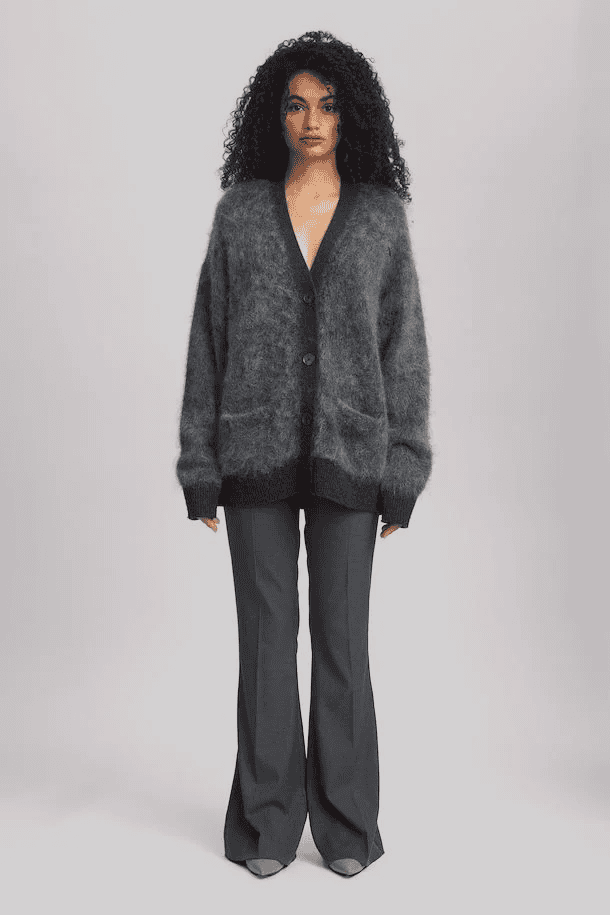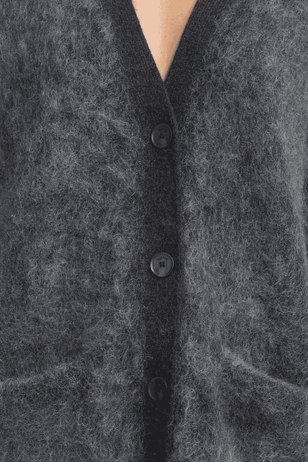 The Gestuz MaciaGZ cardigan charcoal melange is the perfect transitional cardigan to see you through Autumn and into Winter. With a loose fit, v neck and long sleeves and made from a certified wool and mohair mix this will keep you warm and stylish throughout the season. An easy staple to style with the Gestuz ManziGZ Skirt Dark Grey Melange or the Gestuz PaulaGZ Melange Wide Pants Dark Grey Melange