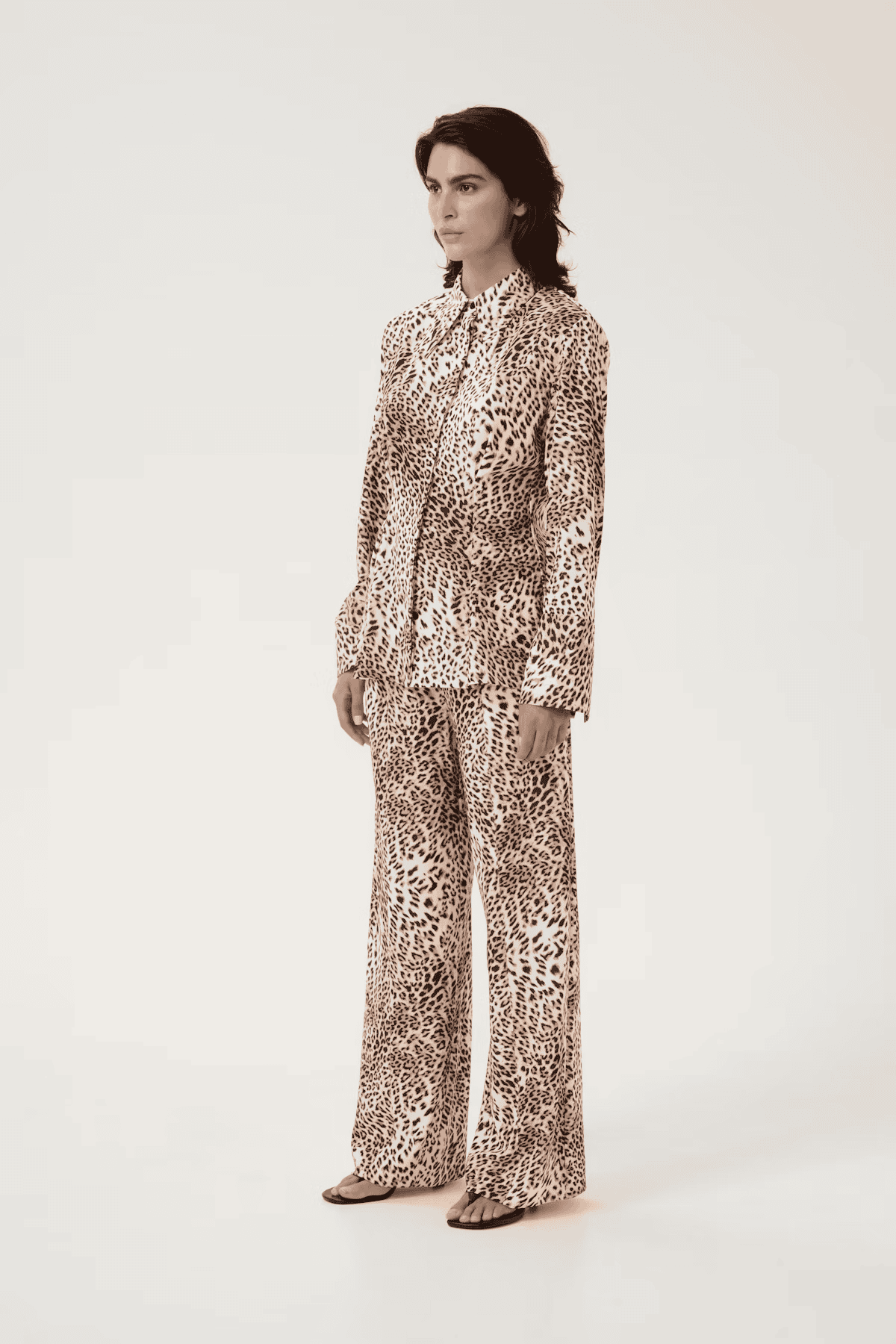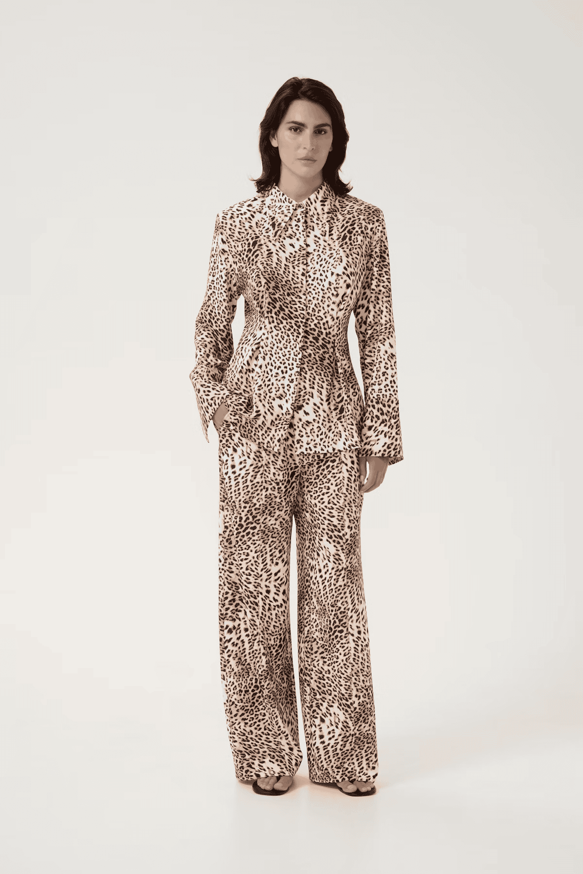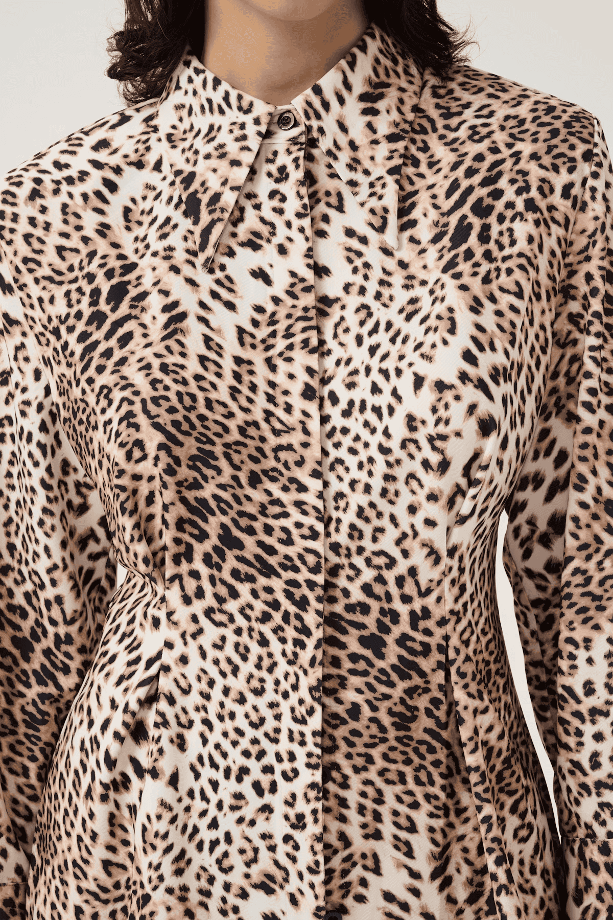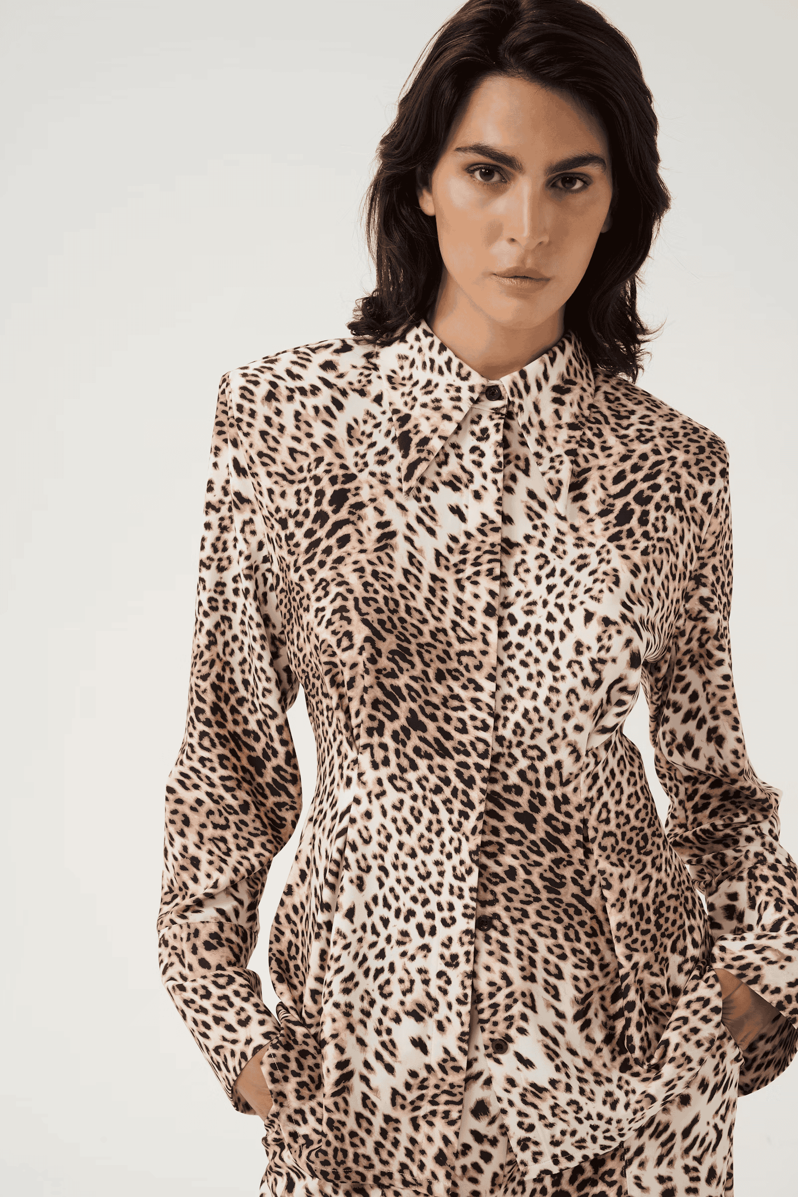 The Gestuz MareenGZ shirt in light leopard is a mid thigh length, long sleeved shirt with a slightly larger than usual pointed collar. It has a darted waist to create a flattering, cinched in fit and a button front fastening. This is a stunning shirt and the all over leopard print is guaranteed to grab people's attention. Style with denim for a more paired back look or for the ultimate statement outfit, style with the coordinating loose fitting trousers.