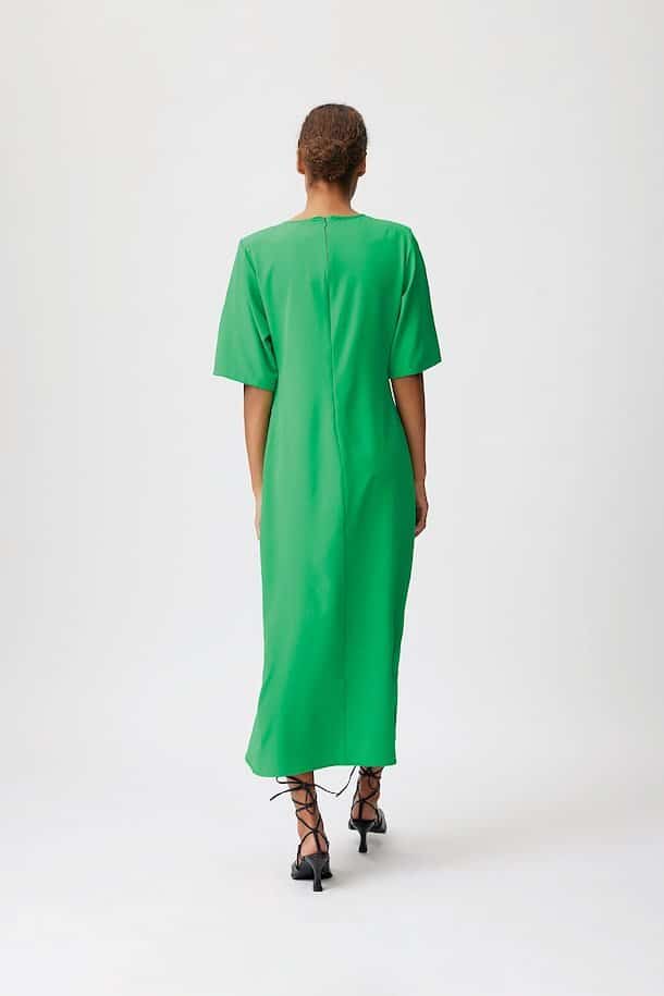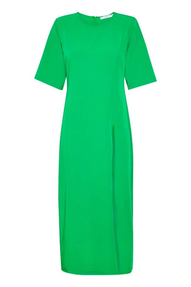 The Gestuz MelbaGZ long dress in green bee is striking, t-shirt dress made from a recycled polyester-blend in the colour of the season. The midi length dress although plain features a high knee slit with zip fastening and shaping at the waist for a flattering fit. The zip enables you to style the dress in different ways depending on how you are feeling, style with the zip closed for a more understated look or unzip to show a bit of leg and elevate your outfit. We absolutely love this dress and will look amazing when worn in the summer sun.