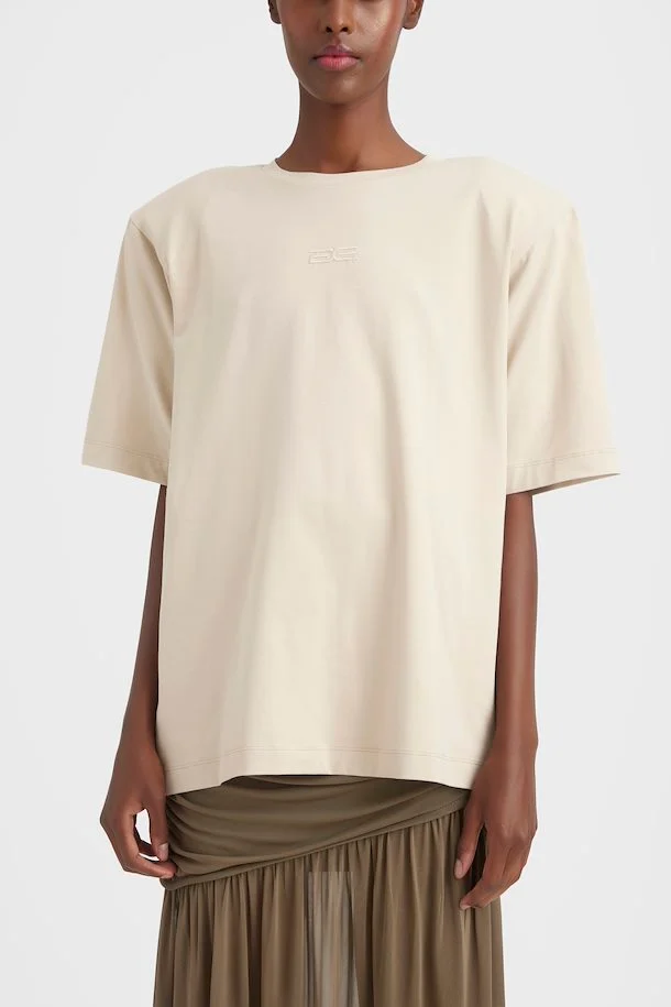 The Gestuz SamurillyGZ Embroidered Tee Island Fossil is an elevated staple. This Getuz tee is casual meets luxury, featuring a boxy fit, crewe neck and falls at a mid hip length making it a perfect addition to your staple wardrobe. Style perfectly with the Gestuz Messi Skirt for a relaxed feminine look.