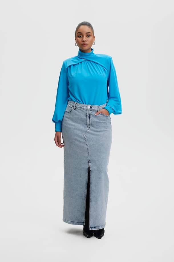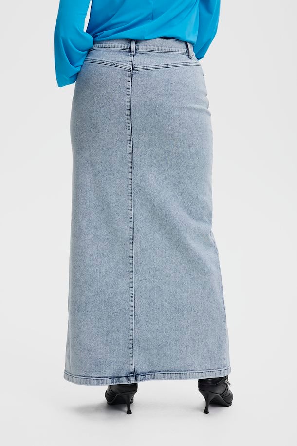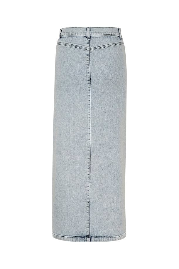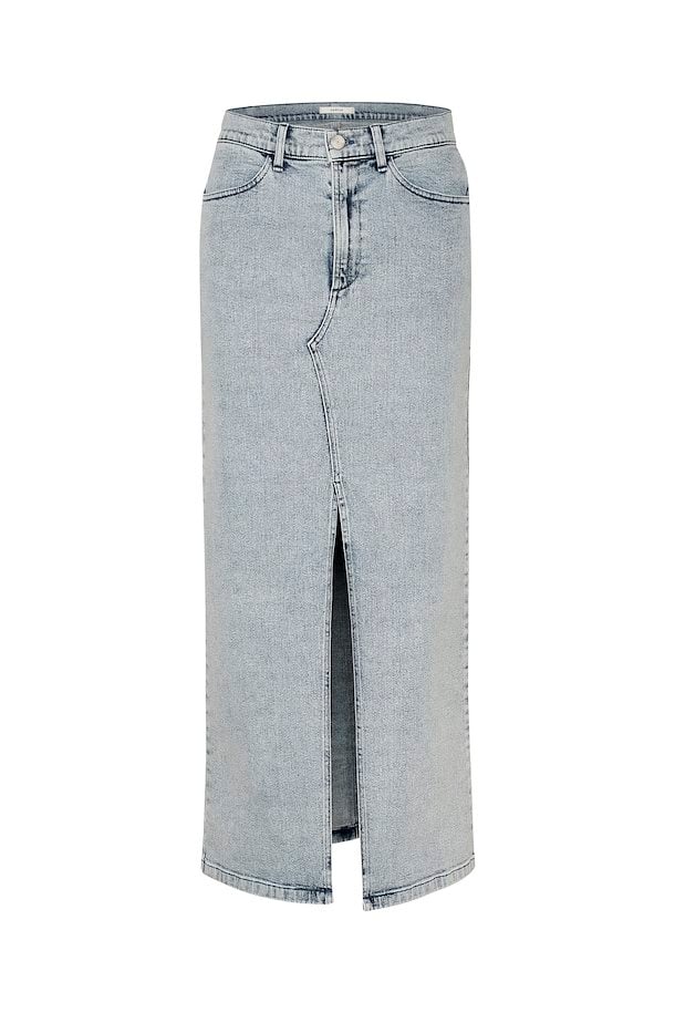 The Gestuz SiwGZ High Waisted Denim Long Skirt Blue Light Blue Washed are refashioned classic denim jeans into a bold maxi skirt for spring. Designed with a high-waisted fit, jeans-style pockets and a chic front slit for ease of movement. Made from a responsible blend with Better Cotton. Available in two colours. Style with your favorite blouse or short jacket.