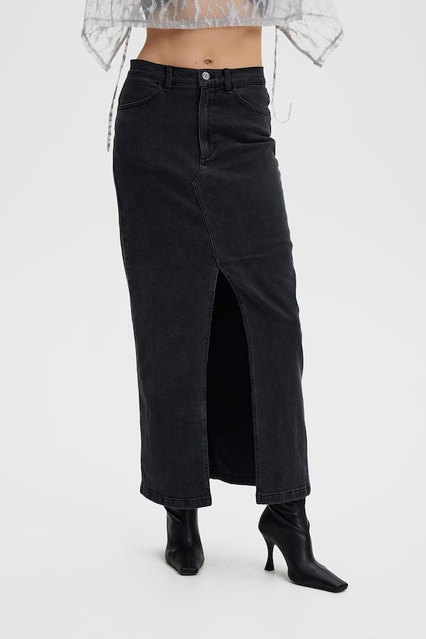 The Gestuz SiwGZ High Waisted Denim Long Skirt Washed Black has refashioned classic denim jeans into a bold maxi skirt for spring. Designed with a high-waisted fit, jeans-style pockets and a chic front slit for ease of movement. Made from a responsible blend with Better Cotton. Available in two colours. Style with your favorite blouse or short jacket.