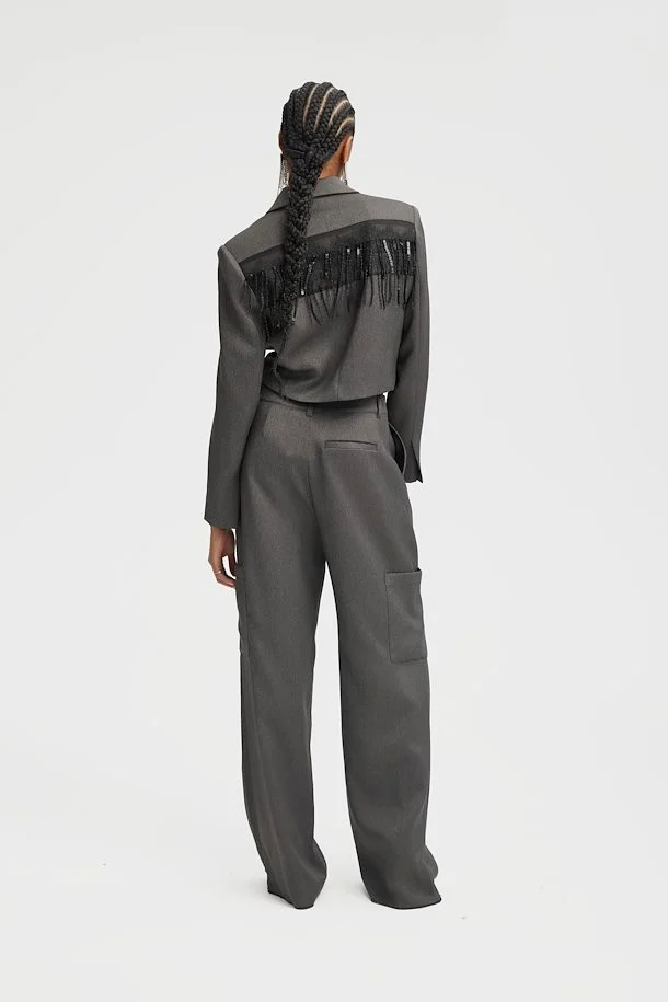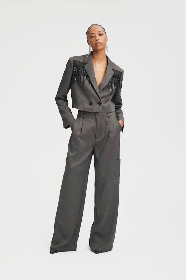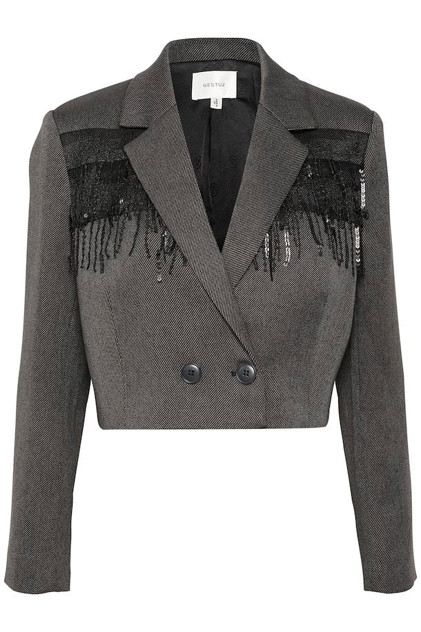 The Gestuz YsellaGZ Short Blazer Woollen Twill Grey/Black is a must-have addition to your wardrobe. Made from a high-quality woven fabric, it features a box fit and short length, making it versatile for any occasion. Pair it with the Ysella trousers for a complete look.
