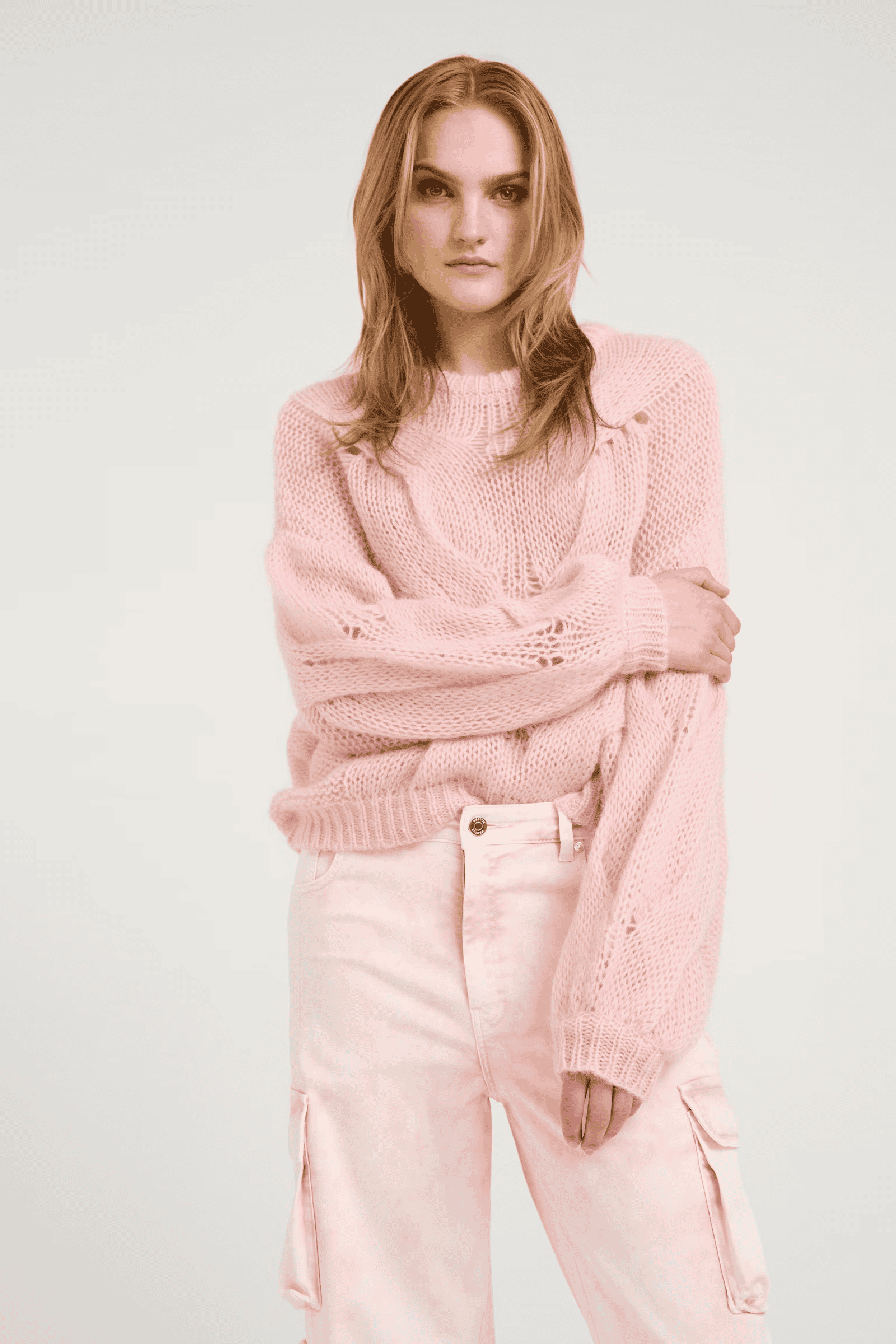 The Gestuz ZeniaGZ pullover in soft pale pink is a gorgeous mohair and wool mix knit perfect for those cool Spring Summer days and nights. In an oversize fit with a slightly open knit, this jumper, in its beautiful pale pink hue is the perfect jumper to keep you stylish and warm.