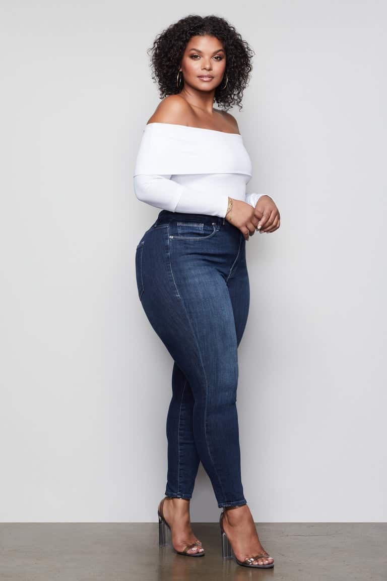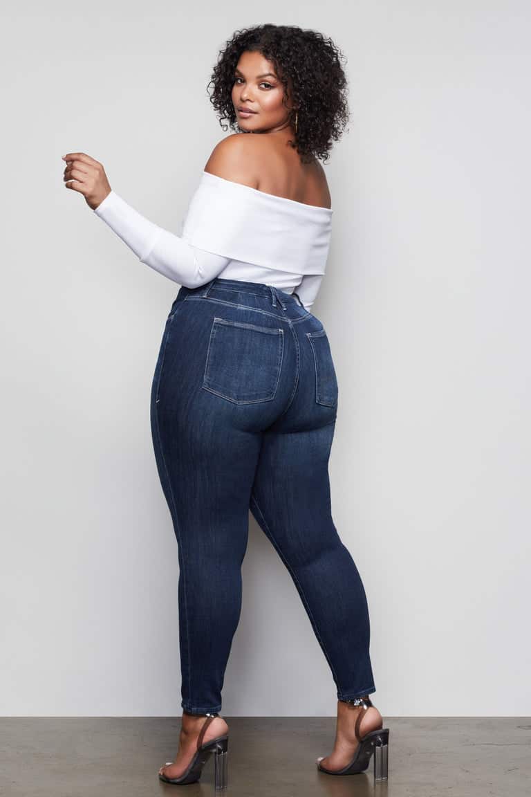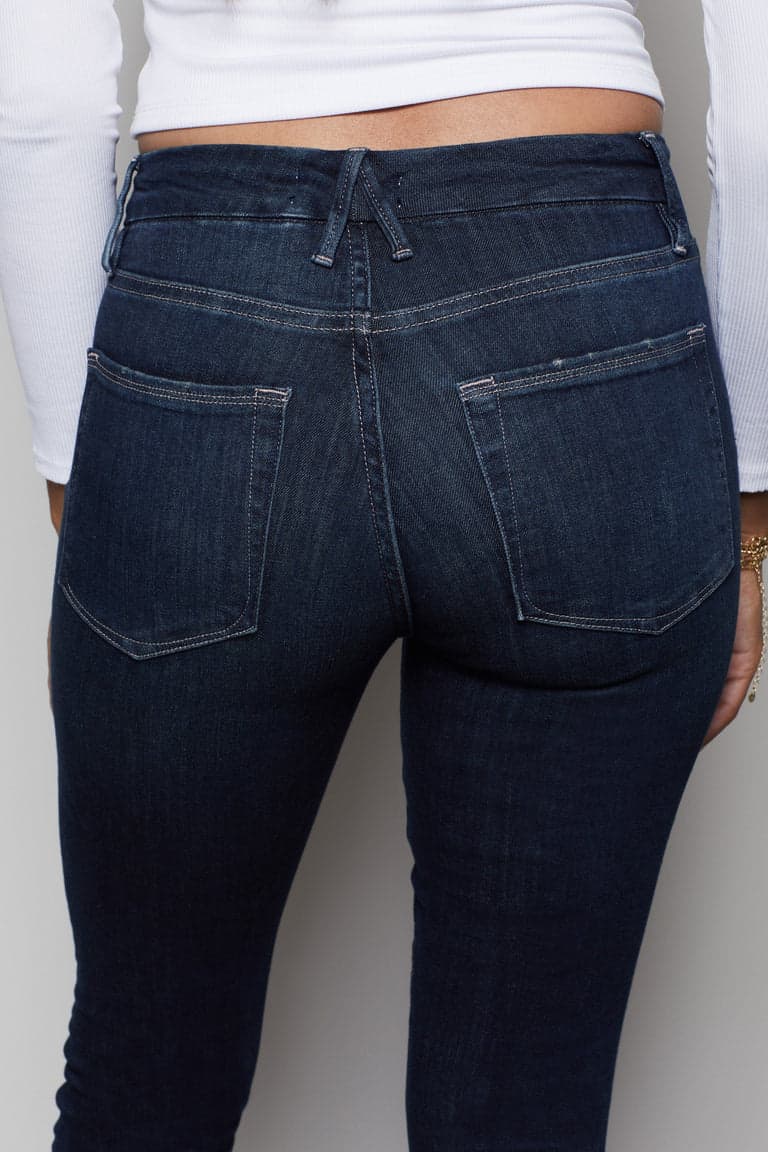 The Good American Good Legs Crop in Blue 260 is the ultimate skinny sculpting jean with extra stretch, flat tummy tech, and a gap-proof waistband in super stretch denim.
